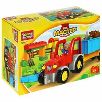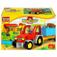 Купить Конструктор большие кубики: Трактор с тележкой, 32 дет. Город Мастеров 10017-GK с доставкой по всей России.