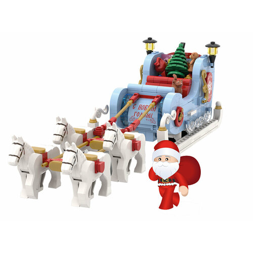 Подарите себе праздничное настроение с набором Brick Labs «Сани Деда Мороза»! Соберите великолепные сани, запряженные четверкой белых лошадок. В санях вы найдете множество подарков: елочку, мишку, гитару и даже котика! Вместе с набором идет фигурка Деда Мороза с большим мешком подарков. Детали конструктора – высокого качества: кирпичики точно сцепляются между собой, легко крепятся и полностью совместимы с другими популярными конструкторами. Сани оснащены декоративными колёсами, яркими огоньками и маленькими аксессуарами – подарочными коробками, новогодними украшениями и миниатюрной елочкой.