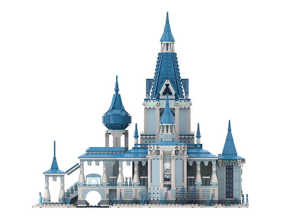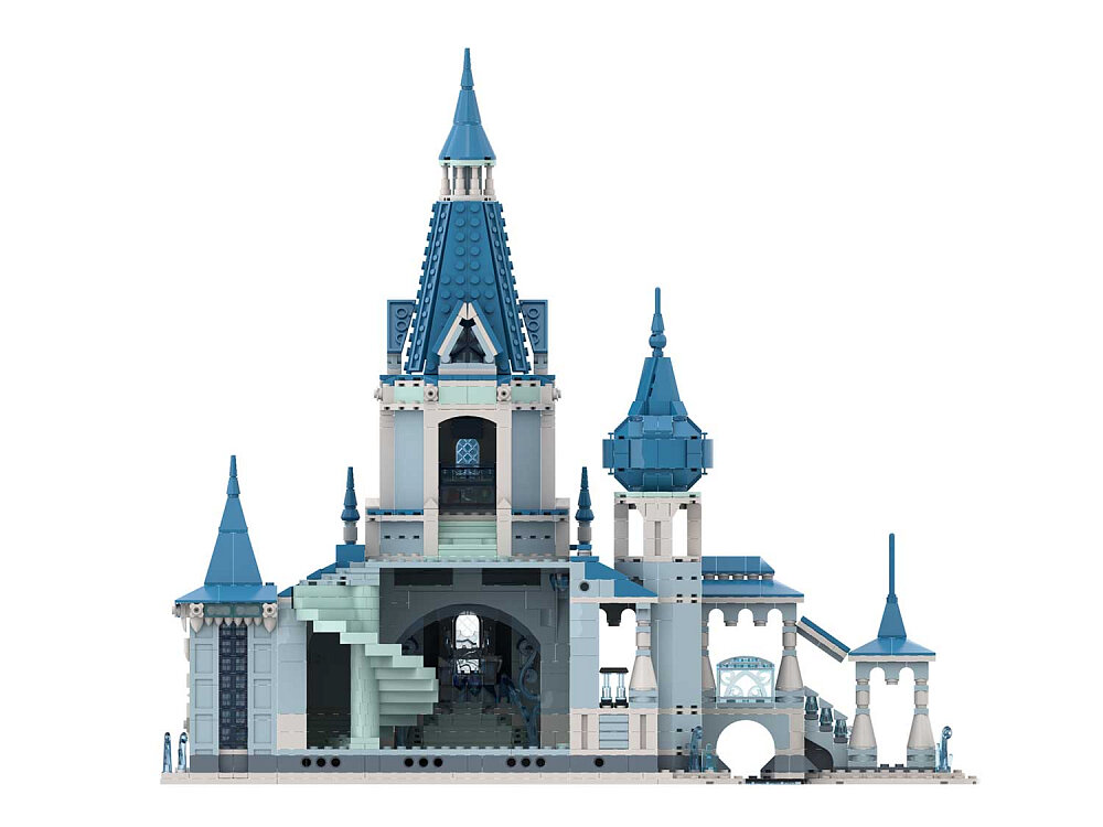Изучите особенности сказочной архитектуры — набор, состоящий из 2188 деталей, предлагает собрать грандиозную двухэтажную модель ледяного терема с элементами дворцового стиля. Голубую постройку с белыми деталями венчают синие крыши и купола. Центральный впечатляющий вход обрамлен круглым сводом, винтовая наружная лестница обеспечивает доступ на второй этаж, боковое крыльцо также имеет лесенку, украшенную перилами. Многочисленные башни и пристройки создают уникальную завораживающую конфигурацию модели.