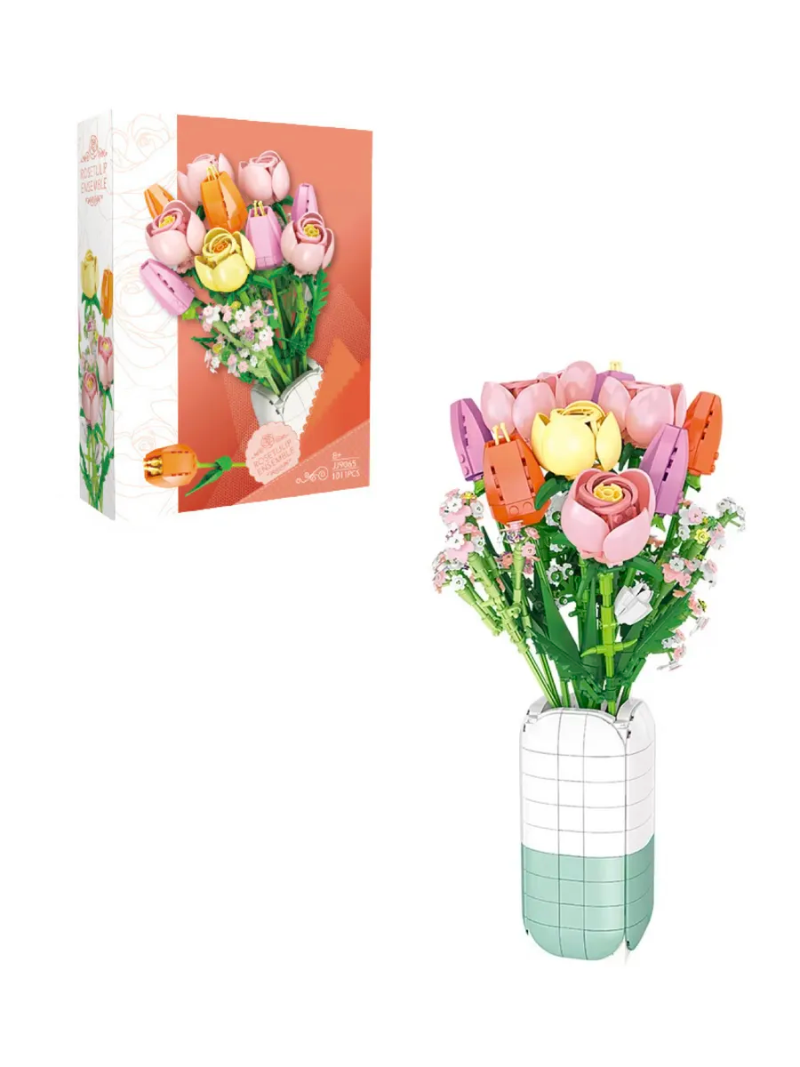 Купить Конструктор для девочки / Букет цветов в вазе 1011 дет. JJ9065 с доставкой по всей России.