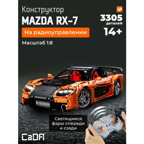 Конструктор CaDA 1:8 Mazda RX-7 3305 детали C61502W представляет собой высокодетализированную модель автомобиля Mazda RX-7 в масштабе 1:8, лицензированную компанией Mazda. Этот конструктор сочетает в себе множество функциональных возможностей, включая управление с помощью дистанционного пульта, переднее и заднее освещение, а также симулированные детали модели, такие как фары-листья и передний сплиттер из углеродного волокна. Модель имеет четырёхступенчатую коробку передач и подвижные элементы, такие как двери и капот.