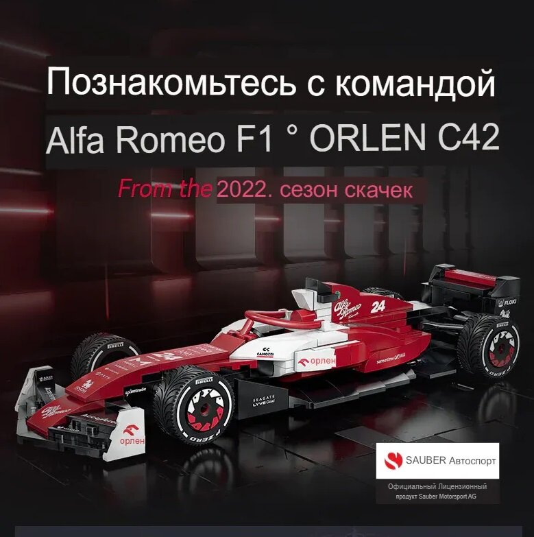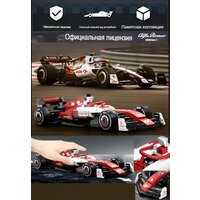 Реалистично воспроизведенный автомобиль Формулы-1 команды под управлением Роберта Кубицы. Набор блоков CADA лицензионный и имеет все оригинальные логотипы, которые были на гоночном автомобиле C24 2022 года.