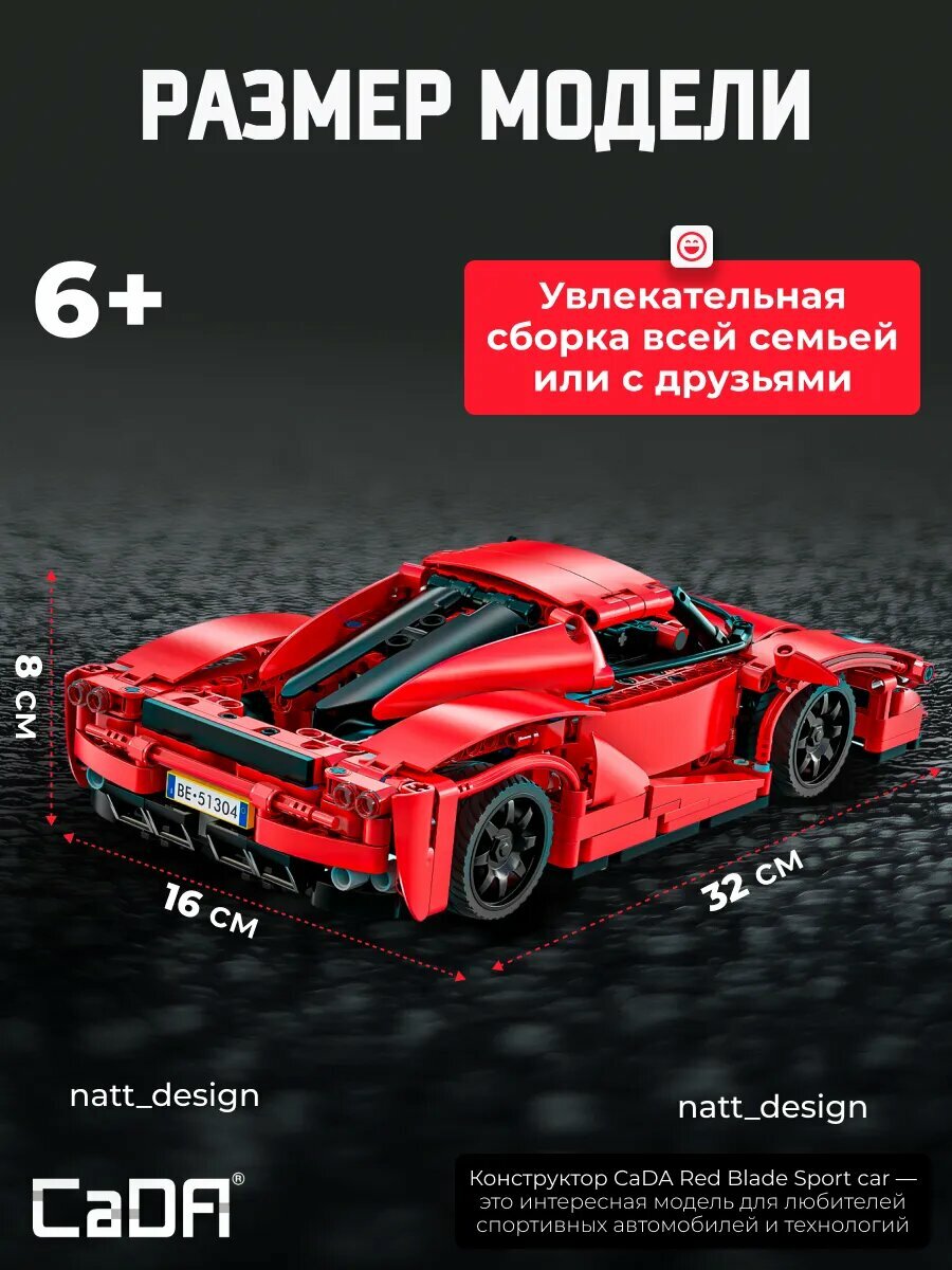 Конструктор CaDA Red Blade sport car 405 деталей C51304W представляет собой динамичную модель спортивного автомобиля с возможностью управления через два режима: 2.4G и Bluetooth APP. Модель обладает функциями дистанционного управления для движения вперёд и назад, а также для поворота влево и вправо. Управление также возможно через приложение, которое позволяет использовать гироскоп, кодирование и программирование для более глубокого взаимодействия с моделью. Подвижные элементы: Дистанционное управление для движения вперёд/назад; Повороты влево/вправ. Конструктор включает в себя литий-ионный аккумулятор для автомобиля, который обеспечивает работу модели. Система управления позволяет использовать как пульт дистанционного управления, так и приложение для управления движением и функциями модели. Этот конструктор идеально подходит для любителей автомобилей и технологий, а также для тех, кто хочет освоить управление механическими моделями через мобильные приложения. Управление моделью осуществляется при помощи радиоуправления, что добавляет дополнительный уровень интерактивности и увлекательности. Модели могут двигаться, поворачиваться и выполнять различные маневры, что делает игру еще более интересной. Характеристики: Модель: C51304W; Категория: Автомобили и транспорт; Размер упаковки: 38 х 7,5 х 28 см; Размер собранной модели: 32 х 16 х 8 см; Вес: 1,05 кг. Входит в комплект: Автомобиль: 3.7 В 500 мАч литий-ионный аккумулятор (в комплекте). Не входит в комплект: Пульт дистанционного управления: JV8001; 1.5 В * 2 батарейки AA (не входят в комплект). Конструктор CaDA Red Blade sport car — это интересная модель для любителей спортивных автомобилей и технологий. Она позволит насладиться процессом сборки и программирования, а также подарит удовольствие от управления моделью с помощью пульта или приложения. Отличный выбор для любителей автомобилей и механики! Конструктор Cada станет отличным подарком для детей и взрослых, которые ценят качество и инновации.