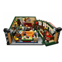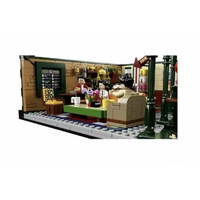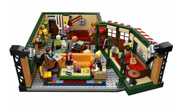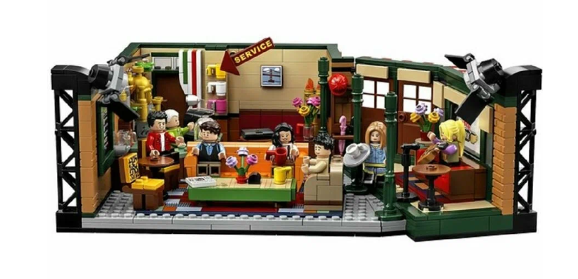 Из деталей набора собирается одно из постоянных мест действия сериала. Друзья встречаются в кофейне, обсуждают новости, свои дела и проблемы за чашкой ароматного кофе с шоколадным кексом или вкусным печеньем. В центре кафе располагаются знаменитый оранжевый диван и столик друзей с креслом и двумя стульями, которые обычно занимают наши герои. На столе стоит табличка “Резерв”, чтобы посетители не занимали их излюбленное место. Также стол украшают цветы, лежит сегодняшняя газета и расставлены чашки. Предметы мебели крепятся к сборному ковру из деталей лего. При желании их можно вынуть из пространстраства кофейни и расположить отдельно. Набор включает 7 минифигурок: Росс, Чендлер, Джоуи, Моника Рейчел, Фиби и Гантер. Каждый персонаж имеет свой знаковый предмет, с которым он был показан в сериале: синтезатор Росса, поднос Рейчел, гитара Фиби, кусочек пиццы Джоуи, ноутбук Чендлера, кекс Моники, метла Гантера. 1228 деталей Аналог Лего