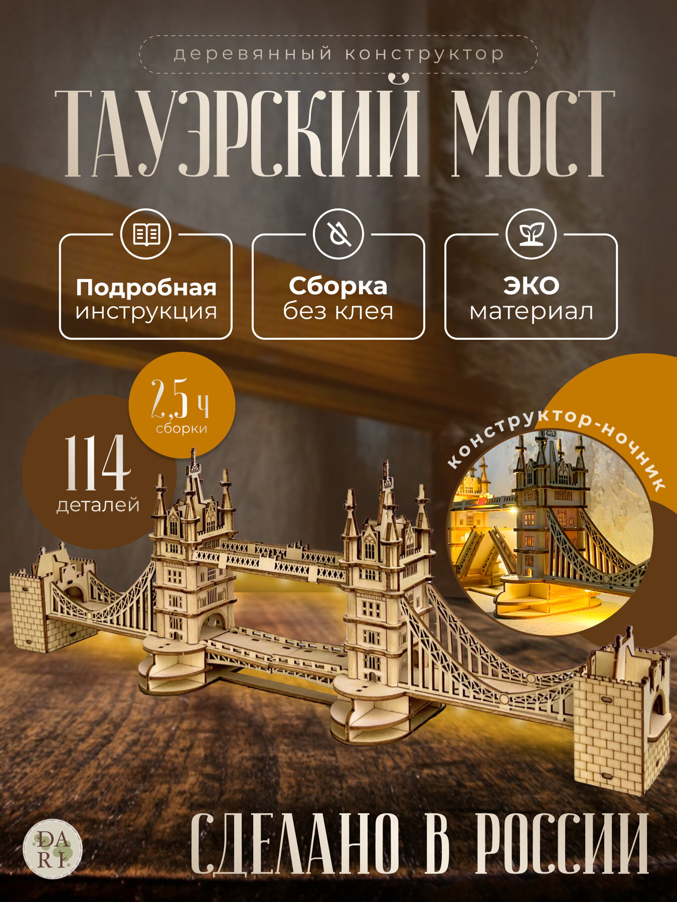 Купить Конструктор Dariwood Тауэрский мост 3d, деревянный, светящийся, 114 деталей с доставкой по всей России. Конструктор Dariwood Тауэрский мост 3d, деревянный, светящийся, 114 деталей: сравнение цен, характеристики, фото, актуальное наличие и цены.