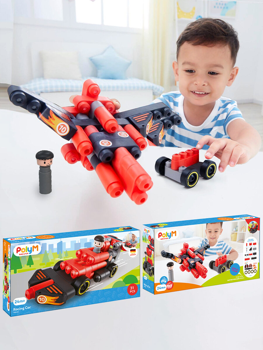 Собери свой собственный гоночный автомобиль! Включает в себя инструкции и все детали, необходимые для целого ряда удивительных автомобилей. Следуйте инструкциям, чтобы построить гоночный автомобиль, изображенный на упаковке. Затем используйте свое воображение, чтобы построить свои собственные автомобили. Набор "Гоночный автомобиль" включает в себя 31 блок PolyM, две колесные пары, одну фигурку, наклейки, инструкцию по сборке. - Блоки PolyM имеют закругленные края и изготовлены из гибкого материала, который можно стирать. Да-да, именно стирать (в стиральной машинке)!))) - Блоки PolyM помогают развивать творческие способности, укрепляют способности детей решать трудности и улучшают социальные навыки. - Все наборы PolyM совместимы друг с другом. - Подходит для детей в возрасте от 1,5 до 5 лет.