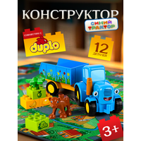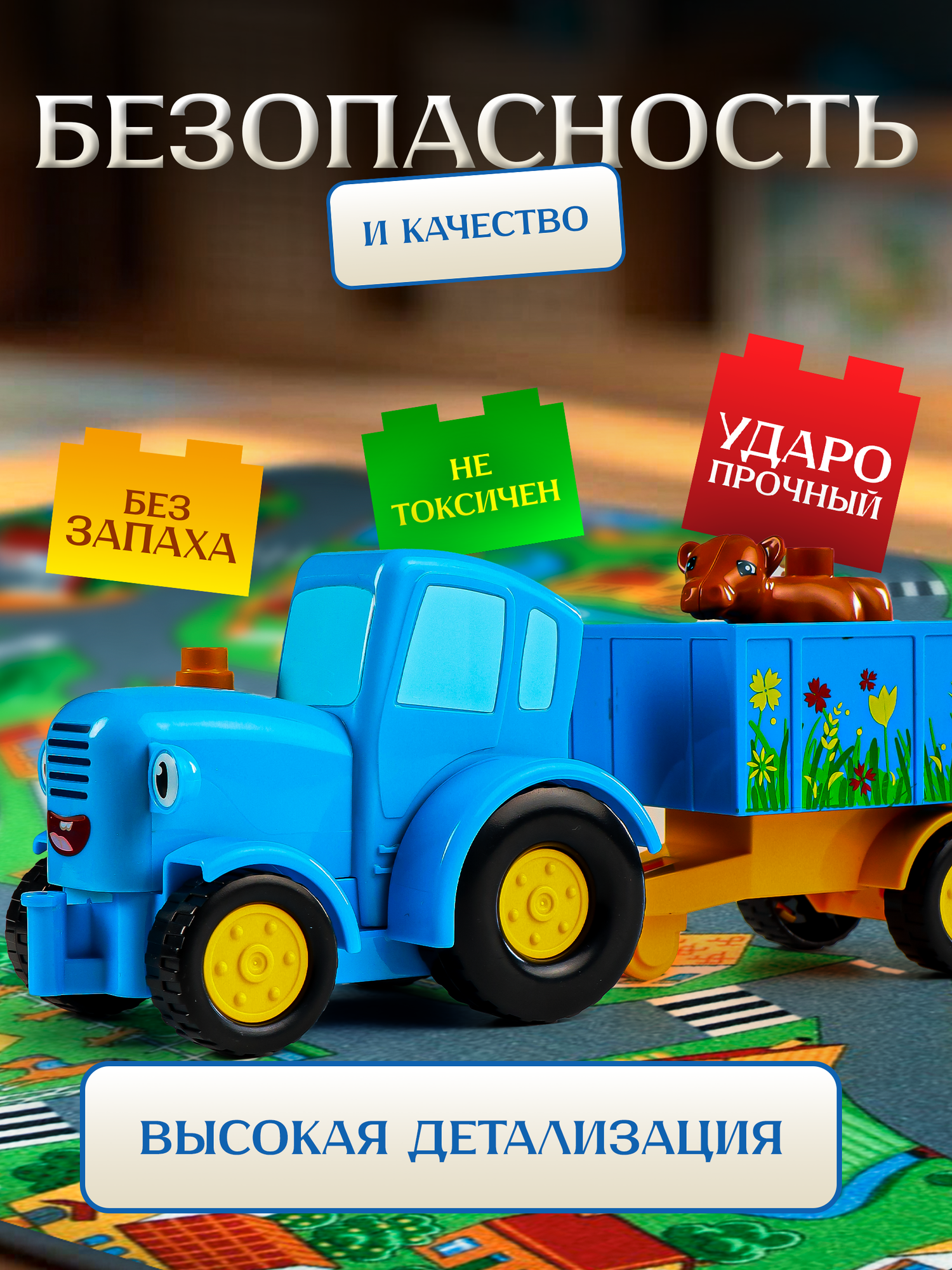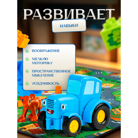 Блочный конструктор "Город мастеров" из серии "Большие кубики" Синий Трактор с прицепом непременно понравится маленьким поклонникам мультсериала про весёлый трактор!