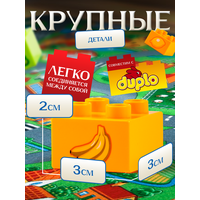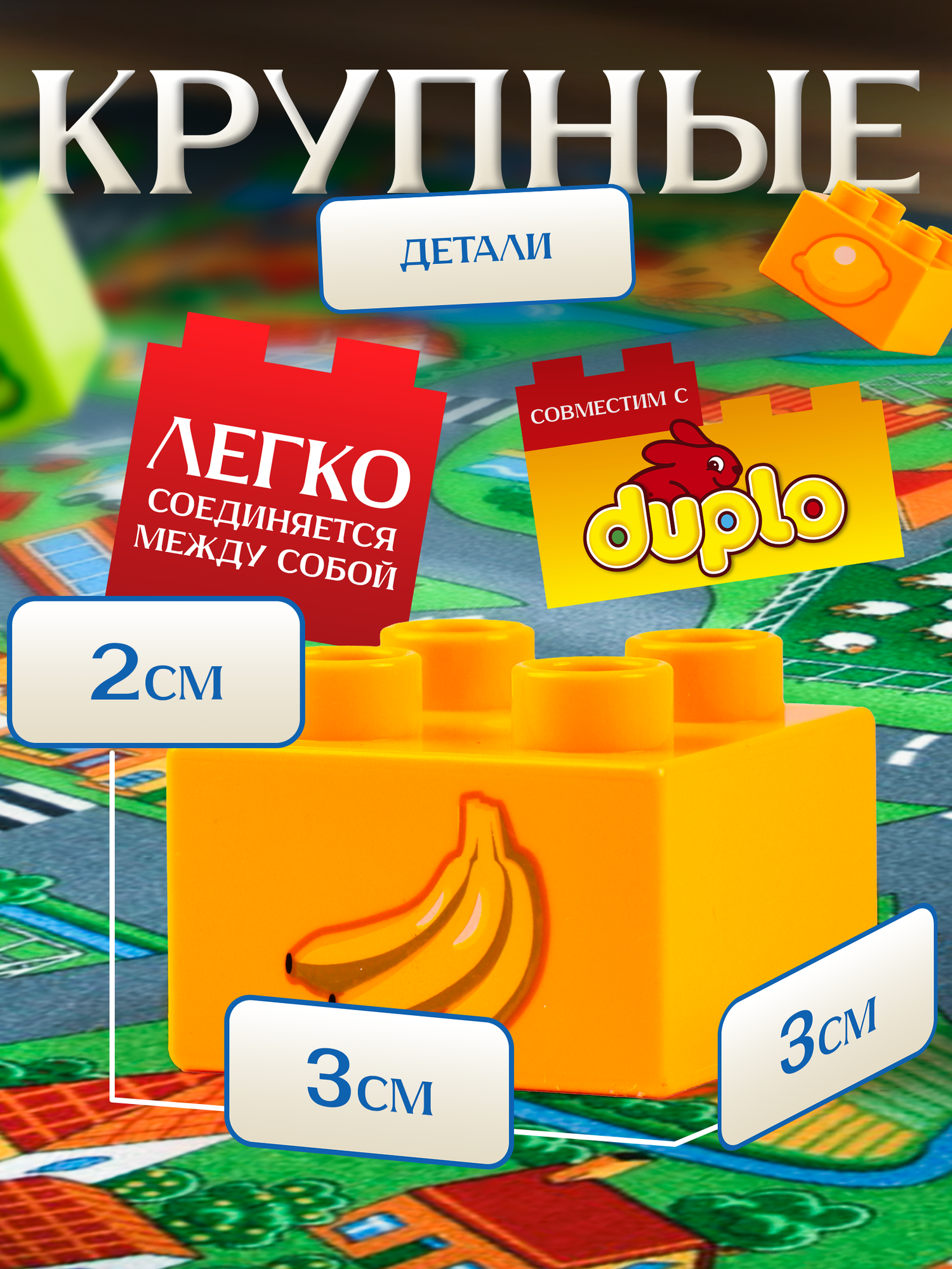 Конструктор предназначен для самых маленьких строителей. В набор входит 12 крупных деталей, сделанных из прочного, безопасного пластика, окрашенных стойкими к истиранию безопасными красителями. Их удобно держать в маленьких ручках и плотно соединять между собой.