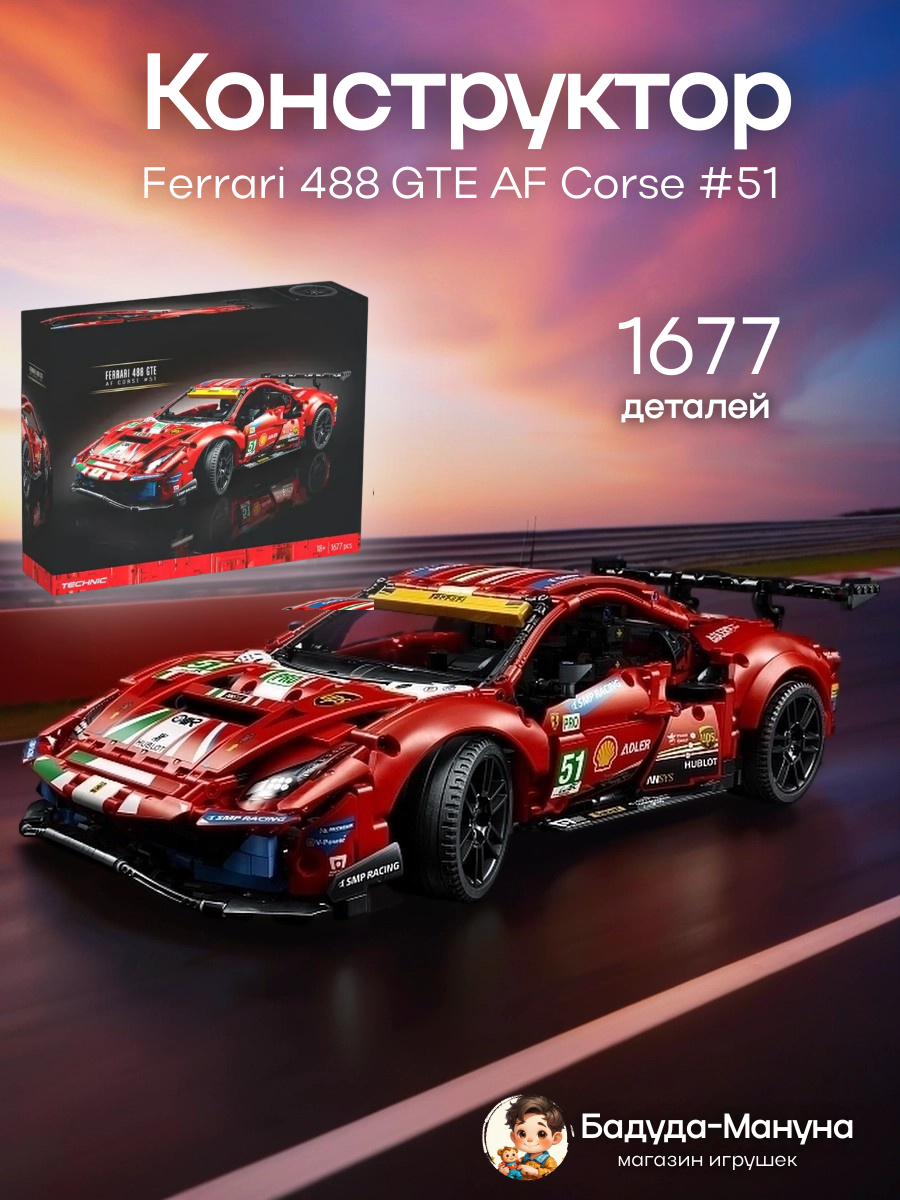 Купить Конструктор Техник «Ferrari 488 GTE», 1677 деталей / Конструктор Феррари для мальчика с доставкой по всей России.