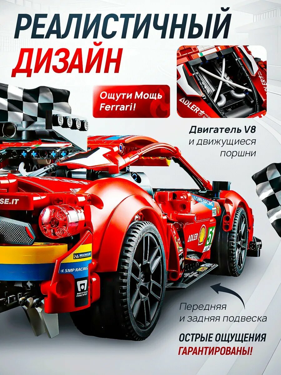 Конструктор Феррари Техник Technic Ferrari 488 GTE AF Corse #51, 1677 подвижных деталей, совместим с LEGO, пластик: сравнение цен, характеристики, фото, актуальное наличие и цены.