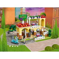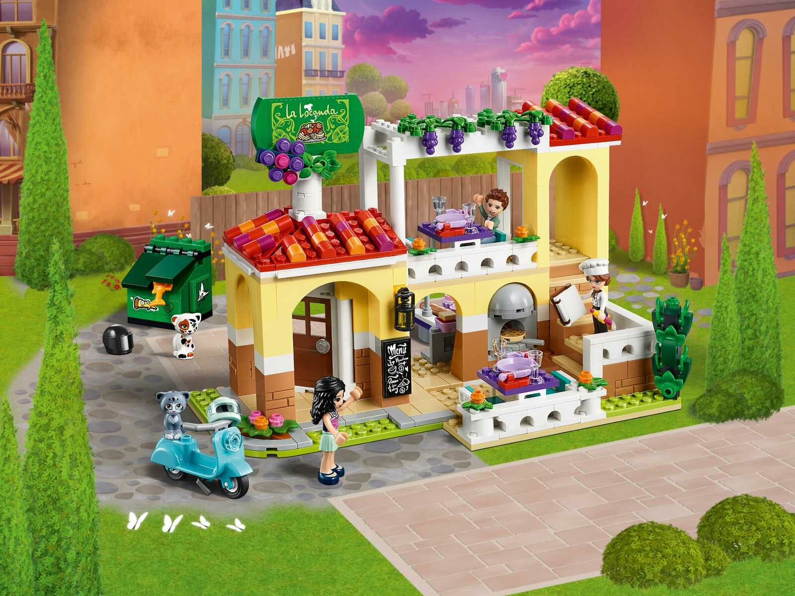 Ресторан Хартлейк Сити – великолепное место, где можно хорошо провести время и поесть. Итан и Эмма собрались сюда, чтобы съесть пиццу. В набор входит также фигурка шеф-повара и двух кошек. Эти хитрюги постоянно следят: не удастся ли стащить что-то вкусное. А может, посетители захотят угостить? Если нет объедков, то мусорный бак – к их услугам. Ресторан – современное здание в два этажа с печью для пиццы, балконом, залом, кухней и туалетом. В наборе есть многочисленные аксессуары: кухонная утварь, посуда, тарелки с пиццей, кексы и продукты для салатов.