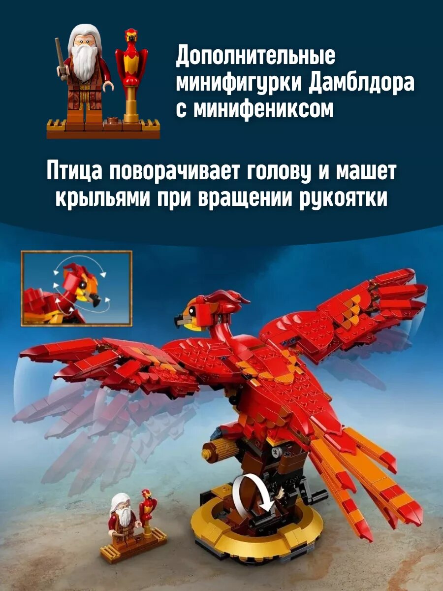 Поклонники культовой киносаги могут собрать копию знаменитой птицы, которая была верным спутником директора школы чародейства и помогла однажды юному волшебнику одолеть страшного Василиска. Вы и ваш ребенок здорово проведете время, собирая этот конструктор. Помимо развлекательной функции он способствует развитию творческого мышления и тренирует мелкую моторику пальцев. Помогает детям осваивать окружающую действительность посредством веселого развлечения. Детские психологи считают, что с помощью такой игрушечки ребенок 7-8-9-10 лет прививает у себя самостоятельность, усидчивость и внимательность. Кроме этого, он учится конструировать и воплощать в жизнь придуманные модели и образы. Серия Harry Potter разрабатывается уже больше 20 лет и продолжает развиваться. Приключения в школе волшебства Гарри Поттера, Рона Уизли и Гермионы Грейнджер стали эталоном жанра фантастики. В этих наборах затронуты новые фильмы вселенной Магического мира и Хогвартса: Фантастические твари, тайны Дамблдора и преступления Грин-де-Вальда. В наборах Гарри Поттер вы найдете известные сцены - Большой зал Хогвартса, сова Букля, Освобождение Добби, матч по Квиддичу, поиск станции на Кингс-Кросс, платформа 3/4, Логово Арагога, Хижина Хагрида, Деревня Хогсмит и другие. Вы найдете своих самых любимых персонажей - Волан-де-Морт, Минерва МакГонагалл, Квирелл и Сьюзан Боунс и Беллатриса Лестрейндж и Северус Снейп (Снегг), Сириус (Северус) Блэк и других. Такое занятие позволяет развивать необходимые для каждого навыки. Кроме того, большой конструктор еще и полезная игрушка, потому что требует от малыша внимания, сосредоточенности и аккуратности. Аналоги совсем не отличаются от оригинала датской фирмы. Благодаря понятной инструкции в голове вашего сына будет сформирована картина конечного результата действия. Новинка будет прекрасным подарком для всех возрастов как мальчику-подростку так и девочке как новогодний презент, а также на День Рождения, 8 Марта или просто без повода.