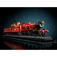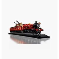 Знаменитый поезд Хогвартс-Экспресс отправляется в школу волшебников с платформы 9 3/4 на вокзале Кингс-Кросс. Из деталей можно собрать точную копию станции и поезда в масштабе 1:32. Поезд состоит из трех частей: красного локомотива, угольной станции и пассажирского вагона. При помощи специального рычага в верхней части локомотива вращаются колеса, заставляя его раскачиваться, как с настоящим паровым двигателем. Благодаря светящимся кубикам, можно включать освещение в вагоне. Внутреннее наполнение всего поезда невероятно детализировано. Уголь в тележке наполнен необходимым количеством для поездки. Вагон поезда вмещает 3 купе: в каждом из них будет представлена отдельная сцена из фильмов о Гарри Поттере с участием других персонажей.