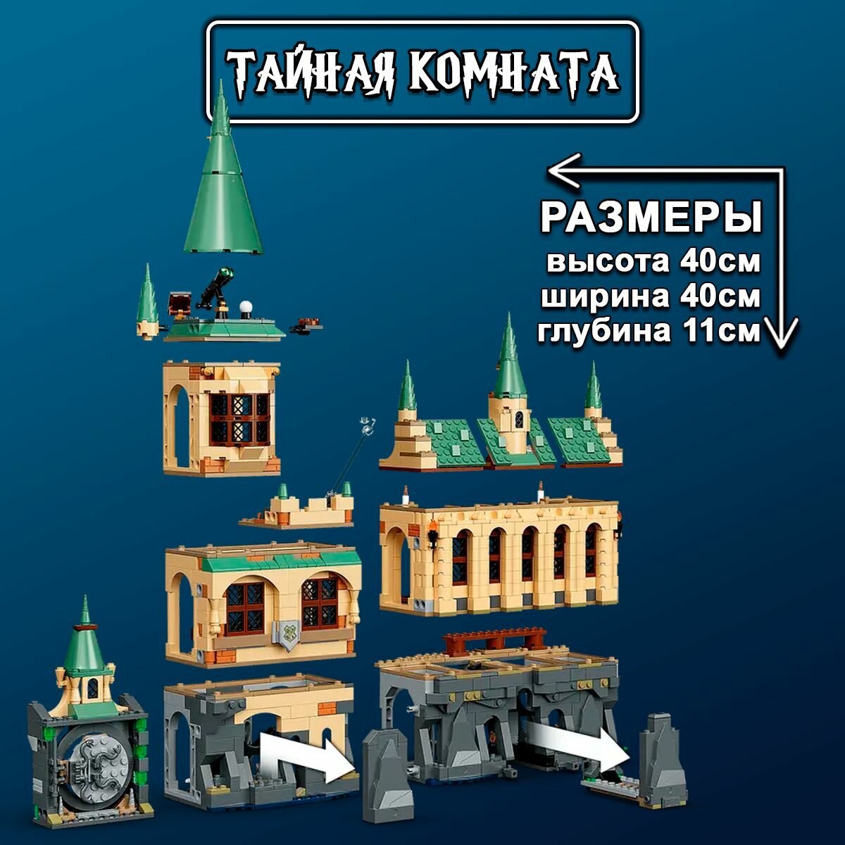 - Большой модульный игровой набор «Хогвартс: Тайная комната» — это универсальная и выдающаяся игрушка, которая очарует любого поклонника фильмов о Гарри Поттере.