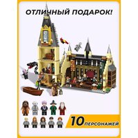 Большой зал Хогвардса, конструктор 6035 серии Гарри Поттер. Размеры зала в собранном виде 30 на 18 на 37 см. Вы и ваш ребенок здорово проведете время, собирая этот конструктор. Помимо развлекательной функции он способствует развитию творческого мышления и тренирует мелкую моторику пальцев. Помогает детям осваивать окружающую действительность посредством веселого развлечения. Детские психологи считают, что с помощью такой игрушечки ребенок 7-8-9-10 лет прививает у себя самостоятельность, усидчивость и внимательность. Кроме этого, он учится конструировать и воплощать в жизнь придуманные модели и образы. Серия Harry Potter разрабатывается уже больше 20 лет и продолжает развиваться. Приключения в школе волшебства Гарри Поттера, Рона Уизли и Гермионы Грейнджер стали эталоном жанра фантастики. В этих наборах затронуты новые фильмы вселенной Магического мира и Хогвартса: Фантастические твари, тайны Дамблдора и преступления Грин-де-Вальда. В наборах Гарри Поттер вы найдете известные сцены - Большой зал Хогвартса, сова Букля, Освобождение Добби, матч по Квиддичу, поиск станции на Кингс-Кросс, платформа 3/4, Логово Арагога, Хижина Хагрида, Деревня Хогсмит и другие. Вы найдете своих самых любимых персонажей - Волан-де-Морт, Минерва МакГонагалл, Квирелл и Сьюзан Боунс и Беллатриса Лестрейндж и Северус Снейп (Снегг), Сириус (Северус) Блэк и других. Такое занятие позволяет развивать необходимые для каждого навыки. Кроме того, большой конструктор еще и полезная игрушка, потому что требует от малыша внимания, сосредоточенности и аккуратности. Аналоги совсем не отличаются от оригинала датской фирмы. Благодаря понятной инструкции в голове вашего сына будет сформирована картина конечного результата действия. Новинка будет прекрасным подарком для всех возрастов как мальчику-подростку так и девочке как новогодний презент, а также на День Рождения, 8 Марта или просто без повода.