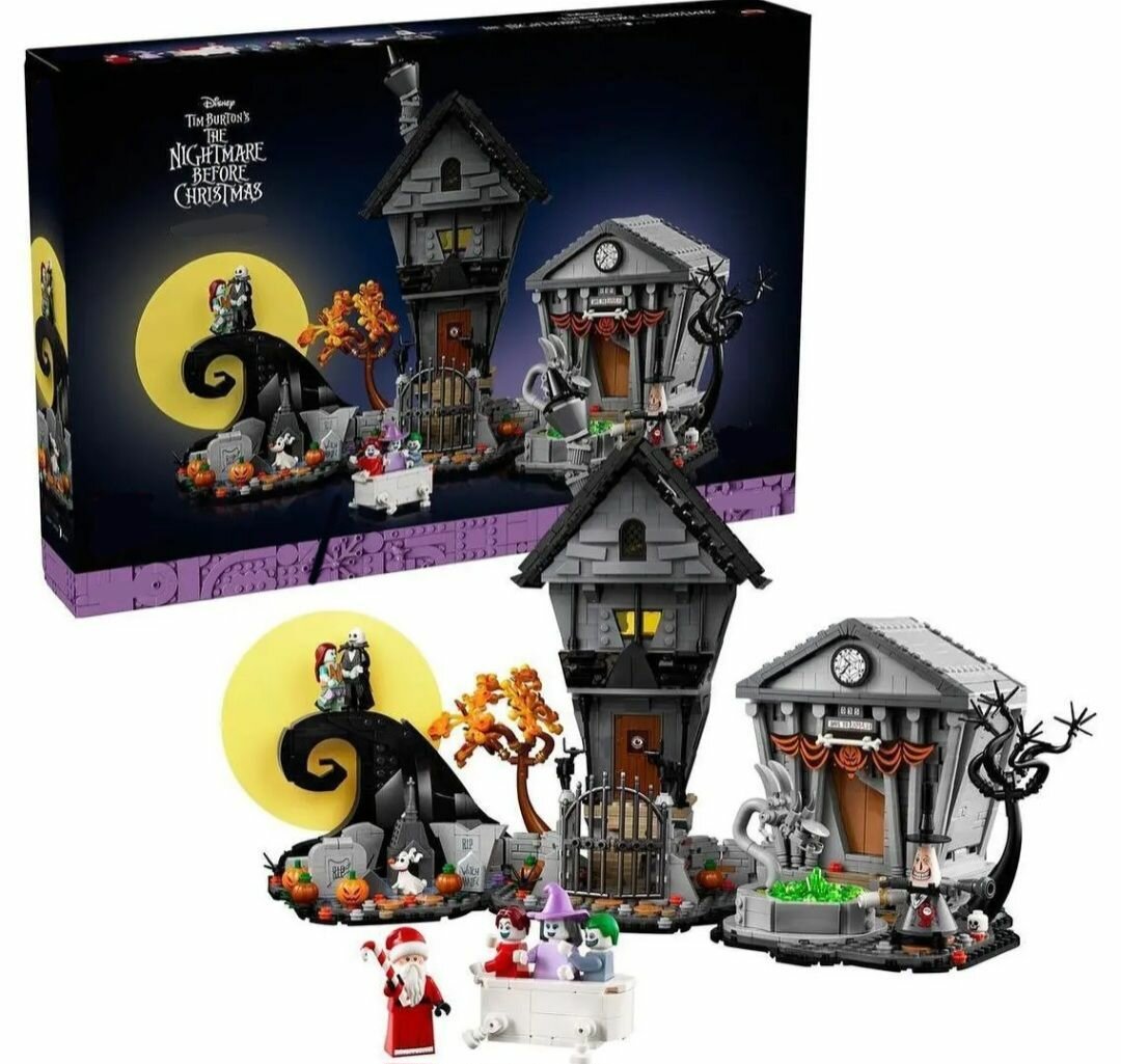 Набор включает соединяемые модели трех знаковых локаций из фильма: Спирального холма, дома Джека Скеллингтона и ратуши на Хэллоуин. Вы сможете насладиться аутентичными деталями, такими как прогулочная ванна, классная доска в доме Джека с его рождественской формулой и кафедра в ратуше, где Джек произносил свою рождественскую речь. Этот набор также можно использовать в качестве рождественского украшения.