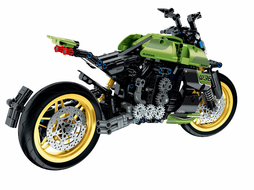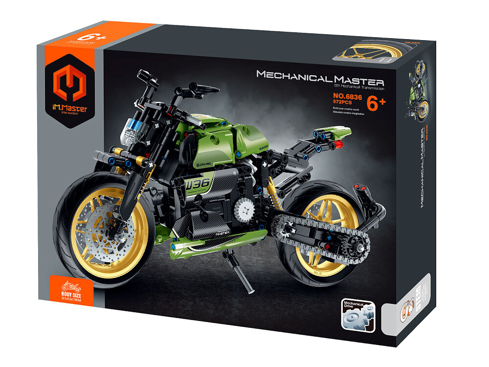 Если вы обожаете скорость, технику и крутые модели, то конструктор iM.Master «Зеленый мотоцикл» (6836_MK) ― идеальный выбор! Этот потрясающий набор позволяет собрать детализированную копию спортивного байка, который впечатляет своим дизайном, механизмами и реалистичностью. 572 детали гарантируют увлекательный процесс сборки. А еще вас точно приведет в восторг конечный результат! • Работающая передача и цепной привод: моторизованные механизмы добавляют модели реалистичности, позволяя ей двигаться, как настоящий байк. • Амортизация переднего и заднего колеса: подвеска работает, сглаживая «неровности дороги», что делает модель максимально приближенной к реальному мотоциклу. Настоящий байкерский комфорт! • Стильный дизайн: агрессивные формы, металлические золотые диски и зеленый корпус делают этот байк настоящей находкой для коллекционеров и любителей мощной техники. • Подвижные элементы: руль, рычаги, колеса ― все двигается и функционирует, создавая эффект полной реалистичности. Готовы почувствовать себя настоящим инженером и собрать байк мечты? Тогда этот конструктор ― именно то, что вам нужно!
