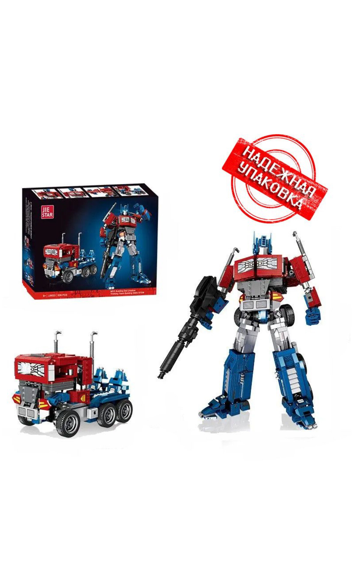 Конструктор "Трансформер Оптимус Прайм 2 в 1" от Jiestar - это высококачественная развивающая игрушка для детей, которая состоит из 928 деталей. Этот конструктор станет отличным подарком для вашего ребенка, который любит роботов и трансформеры.