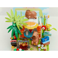 Перенеситесь в теплые края, где царит бесконечное лето, с конструктором Jaki «Капибары в кемпинге» (GK003). Присоединяйтесь к милой парочке водосвинок, которые расположились на поляне под пальмами среди цветов. На костре греется чайник, на мангале готовится еда, а магнитофон готов к вечеринке. Порхают бабочки и поют птицы. Что еще нужно для счастья? Разве что надежное укрытие на случай непогоды, и оно тоже есть. Модель размером 14,64х12,32х12,32 см, наполненная яркими красками и атмосферой отдыха, станет ярким украшением интерьера, поднимающим настроение, и игровой площадкой для детей от 8 лет и старше. Прекрасный подарок, который будет напоминать о летнем тепле и беззаботности круглый год.