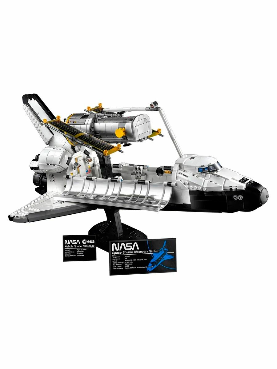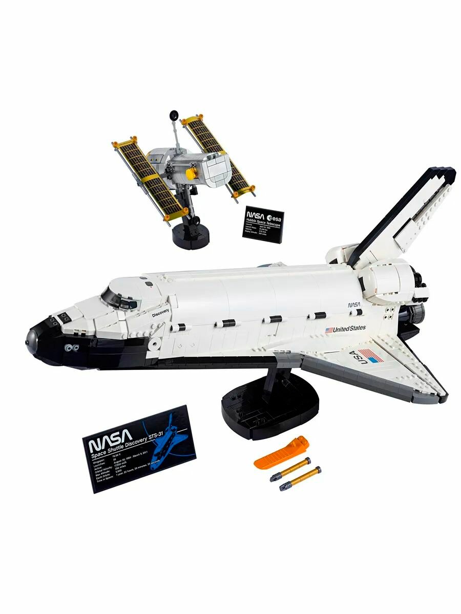 Космический шаттл наса Дискавери самый известный космический корабль за последние 40 лет. Собирайте невероятно детальную версию легендарного шаттла в комплекте с космическим телескопом «Хаббл». Раскрывайте тайны Солнечной системы и расширяйте понимание Вселенной. Отправляясь в путешествие во имя науки. Оцените его реалистичные детали: открывающийся грузовой отсек, убирающееся шасси, открывающуюся кабину, движущиеся элевоны, стрелу-манипулятор и 5 мест для экипажа. А у космического телескопа «Хаббл» есть подвижные солнечные панели и люк, как у настоящего. Играйте и создавайте новые сценарии и сюжеты из серии Space на основе реальных космических миссий наса, украшайте свою выставочную коллекционную полку. Размер собранного набора: 54 х 34 х 21 см.