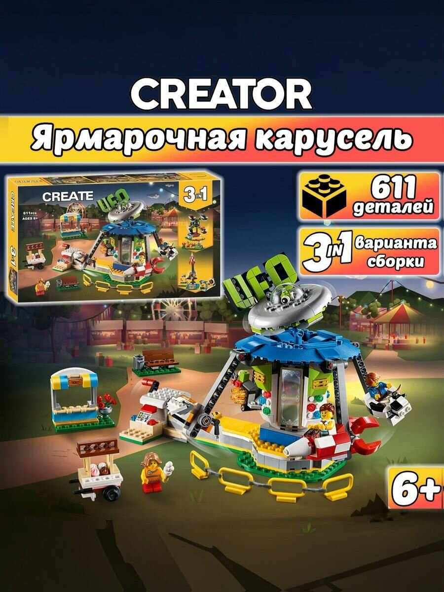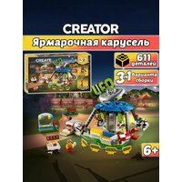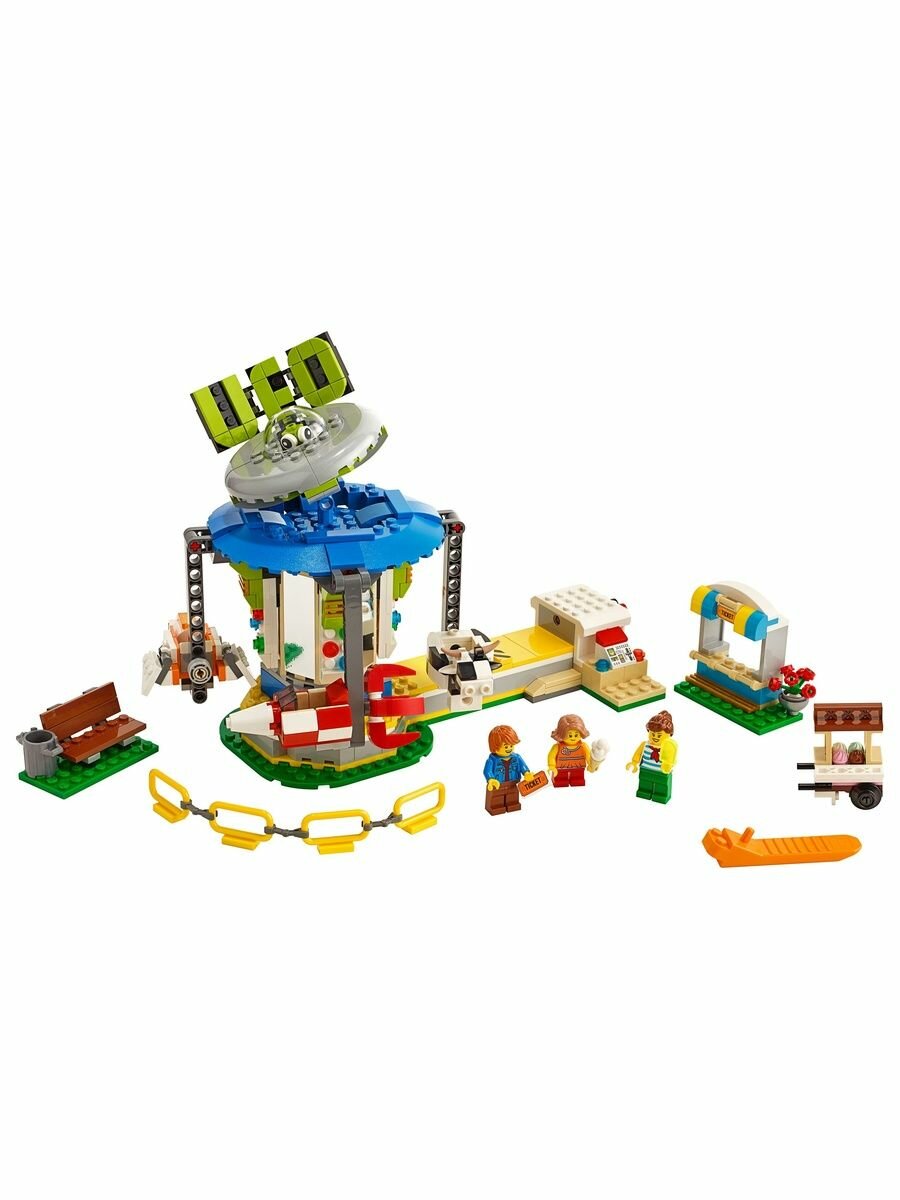 Конструктор Creator «Ярмарочная карусель» поможет вам создать мир веселых приключений в парке аттракционов. В представленном наборе ваши детки найдут билетный киоск, колесо обозрения, вывеску НЛО, космическую карусель, парковую лавочку, аппетитное мороженое - все, что нужно для увлекательной игры. С конструктором Creator ваши дети смогут выбрать понравившиеся подвесные качели. Чтобы запустить карусель и увидеть, как она кружится, достаточно только повернуть красную ручку. Представленный набор предназначен для мальчиков и девочек младшего школьного возраста - от 8 лет и старше. С набором вы сможете опробовать в одной игре 3 карнавальных аттракциона. Построенную карусель вы сможете в считанные минуты переделать в Колесо обозрения или Аттракцион свободного падения - так ярмарка станет еще веселее.