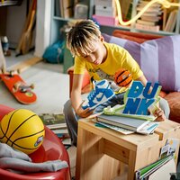 К набору для сборки прилагается эксклюзивная минифигурка с головой B'Ball, которая украшает кроссовки Nike drip и Nike Dunks в соответствии с вашей новой конструкцией.