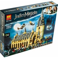 Конструктор «Большой зал Хогвартса» от производителя Bela — высококачественный аналог набора Lego (75954 Harry Potter Hogwarts Great Hall). Юные владельцы конструктора будут искренне рады возможности собрать мини-копию самого просторного зала Школы волшебников и использовать в деле замечательные игровые аксессуары — лодку, василиска, Распределительной шляпы, набора котелков и волшебных зелий. В наборе 10 минифигурок — главных героев и профессоров школы. Мир школы волшебства Хогвартса Джоан Роулинг представлен для своих фанатов в виде фильмов, игр и огромного количества конструкторов. Главные герои — минифигурки магов и волшебников: Гарри Поттер (Harry Potter) с волшебной палочкой, Лорд Волдеморт (Темный лорд Волан-де-Морт или Воландеморт) с крестражами, Гермиона Грейнджер, Рон Уизли, Молли Уизли, директор Хогвартса профессор Альбус Дамблдор, Джинни Уизли, Северус Снейп, Питер Петтигрю Скабберс, Ремус Люпин Лунатик, Сириус Блэк Бродяга, Альбус Северус Поттер, Лили Поттер, Джеймс Сириус Поттер, Профессор Слагхорн, Профессор Трелони, Невилл Долгопупс. Прогуляйся по территории Большого замка Хогвартс из серии «Философский камень» и его большому залу, Выручай-комнате, Астрономической башне, Тайной комнате, загляни в кабинет Дамблдора, Больничное крыло, Часовую Башню, Орден Феникса. Во дворе Хогвартса при спасении Сириуса (Узник Азкабана) тебя ждет пушистая встреча с гигантским трехголовым псом Пушистиком, поэтому Карета и Фестралы Хогвартса помогут тебе убежать в Министерство магии или на Площадь Гриммо, дом 12. Косой переулок с волшебными хрипами Уизли и Косая аллея с волшебными лавками, а так же Хижина Хагрида более дружелюбна, чем Визжащая хижина и Гремучая Ива, а Визит в деревню Хогсмид или Волшебный банк Гринготтса порадуют знатоков колдовства. Фигурки культовых персонажей: Ремус Люпин, Рубеус Хагрид, Драко Малфой, Беллатрикс Лестрейндж, Пожиратель смерти, Чо Чанг, Гоблин, Невилл Лонгботтом, Анджелина Джонсон, Луна Лавгуд, Майкл Корнер, Седрик Диггори, Ханна Эббот, Златопуст Локонс, Крыса Короста. Можно летать на машине, метле или устроить Матч по квиддичу, а можно на поезде Хогвартс Экспресс с платформы вокзала станции Хогсмид поехать на Тисовую улицу, дом 4, или на автобусе «Ночной рыцарь» перевезти Чемодан Ньюта с волшебными существами или полетать на метле. Но Hogwarts — это прежде всего Школа Волшебников, а значит, нас ждет учеба после решения распределяющей шляпы: Урок зельеварения или травологии, Урок прорицания, Урок трансфигурации, Первый урок полётов, Урок заклинаний или защиты от тёмных искусств, где может случится ошибка с оборотным зельем. Историю учеников демонстрируют знамя и баннеры факультетов Гриффиндор (Gryffindor), Слизерин (Slytherin), Когтевран (Ravenclaw), Пуффендуй (Hufflepuff) и символы Хогвартса из коллекционного издания: Волшебный чемодан Хогвартса, Сундук для Квиддича, Волшебные Шахматы, птица Фоукс — феникс Дамблдора, сова Букля с письмом, Добби — домашний эльф, чудовищная книга, шоколадная лягушка и сладости, перо, часы и мантия невидимка, лампа, карта мародеров. Среди темных магов нет покоя: Восстание Волдеморта, Побег Гриндевальда после прибытия кареты Шармбатона, Атака на Нору, Битва за Хогварт. Но и светлые силы не дремлют: Экспекто Патронум, Логово Арагона и больших пауков, встреча с Долорес Амбридж в Запретном лесу, спасение Клювокрыла