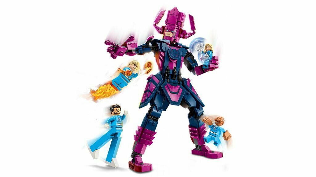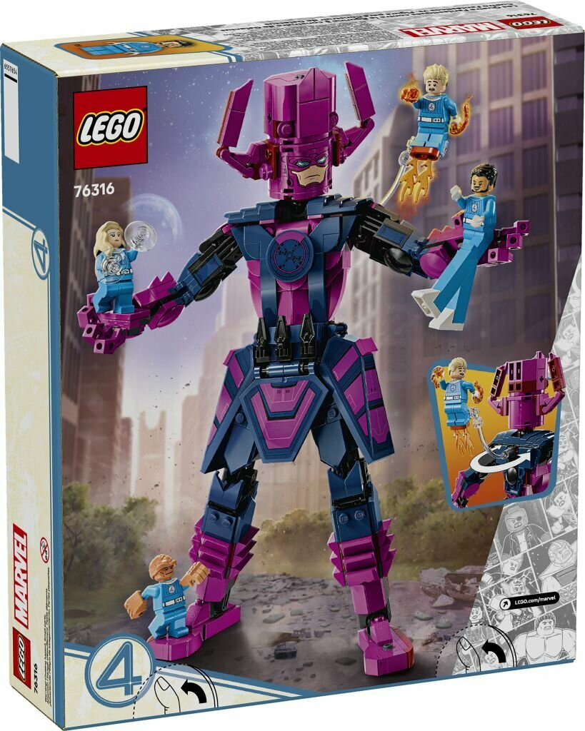 Конструктор LEGO Super Heroes 76316 Фантастическая четверка против ГалактусаПоклонники фильма Marvel Studios «Фантастическая четверка: Первые шаги» могут воссоздать действие фильма с помощью фигурки LEGO ǀ Marvel Fantastic Four vs. Galactus Construction Figure (76316), первого набора LEGO Fantastic Four! Этот впечатляющий подарок для мальчиков и девочек в возрасте от 9 лет и старше - набор LEGO ǀ Marvel для сборки и игры, предназначенный для детей, которые любят приключения супергероев. Сборная игрушка LEGO ǀ Marvel Fantastic Four включает в себя 4 минифигурки: Мистер Фантастик с выдвижными ногами; Человек-Факел с 2 ручными бластерами и элементами пламени, прикрепленными к его ногам, а также прозрачной опорой, которая позволяет ему «летать»; Невидимая женщина с 2 силовыми щитами; и Существо с его большими мощными руками. Полностью шарнирная сборная фигурка культового злодея фильма, Галактуса, имеет высоту более 11 дюймов (28 см). Эта подвижная сборная фигурка побуждает к бесконечным действиям, пока он сражается с супергероями. Для дополнительного цифрового веселья строители могут увеличивать масштаб, вращать модели в 3D и отслеживать прогресс с помощью веселого, интуитивно понятного приложения LEGO Builder. Набор содержит 427 деталей. Сборная игрушка LEGO Fantastic Four для детей – Фантастическая четверка против Галактуса. Фигурка для мальчиков и девочек в возрасте от 9 лет и старше, созданная по мотивам фильма Marvel Studios «Фантастическая четверка: Первые шаги». Минифигурки Фантастической четверки — у Мистера Фантастика выдвижные ноги; у Человека-Факела есть ручные бластеры, пламя на ногах и пропеллер; у Невидимой Леди есть силовые щиты; у Существа очень большие руки. Большая фигурка LEGO ǀ Marvel – полностью шарнирная модель злодея из фильма, Галактуса, обладает высокой подвижностью, что позволяет детям играть в бесконечные динамичные сражения с минифигурками супергероев. Первый в истории набор LEGO для сборки «Фантастическая четверка» — эту коллекционную игрушку-конструктор интересно собирать, с ней весело играть и она впечатляет, когда ее демонстрируешь. Подарок для детей «Фантастическая четверка» — этот универсальный набор LEGO станет отличным подарком для мальчиков и девочек, которые являются поклонниками фильма «Фантастическая четверка: Первые шаги» от Marvel Studios и других приключений супергероев. Инструкции по сборке в формате 3D — дети могут загрузить приложение LEGO Builder, чтобы погрузиться в процесс сборки, используя цифровые инструменты для увеличения и вращения моделей в формате 3D, сохранения наборов и отслеживания прогресса. Сборные игрушки для юных супергероев – широкий ассортимент наборов LEGO ǀ Marvel открывает детям постоянно меняющуюся вселенную приключений супергероев, в которой можно собирать и играть. Набор из 427 деталей. Полностью сочлененная фигурка Галактуса высотой более 11 дюймов (28 см)
