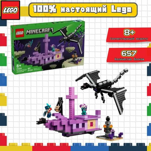 ● Игровой набор LEGO® Minecraft® — включает в себя сборную игрушку дракона и корабль, а также исследователя Края, рыцаря Края и человека Края из Minecraft