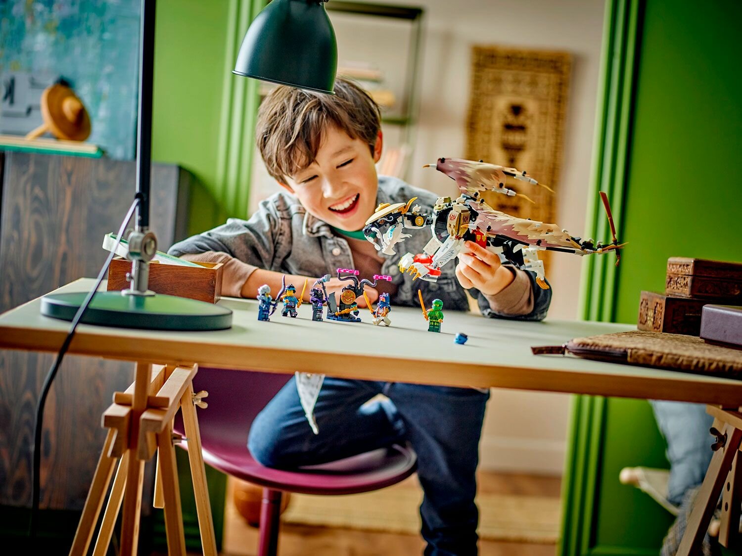Больше веселья в больших приключениях ниндзя. Больше замечательных игровых наборов LEGO NINJAGO. Дети могут комбинировать Эгалта, мастера дракона, с другими крутыми наборами NINJAGO (продаются отдельно) и использовать их для воссоздания других сцен из второго сезона сериала NINJAGO: Возвращение драконов.