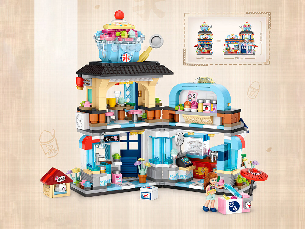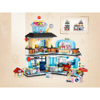 Поклонники архитектуры и восточной культуры придут в восторг, увидев конструктор LOZ «Кафе-мороженое» (1244_MK). Красочное двухэтажное здание наполнено тщательно проработанными деталями, передающими азиатский колорит. Яркие вывески, красные китайские фонарики, черепичная крыша, детализация десертов, домик для кошки и множество других аксессуаров делают готовую модель настоящим шедевром, который можно с гордостью демонстрировать. Конструкция здания раскрывается, изменяя его конфигурацию, что позволяет еще лучше рассмотреть все детали. Минифигурка девушки с мороженым, а также отдельный уголок с зонтиком добавляют реалистичности и расширяют возможности игры.
