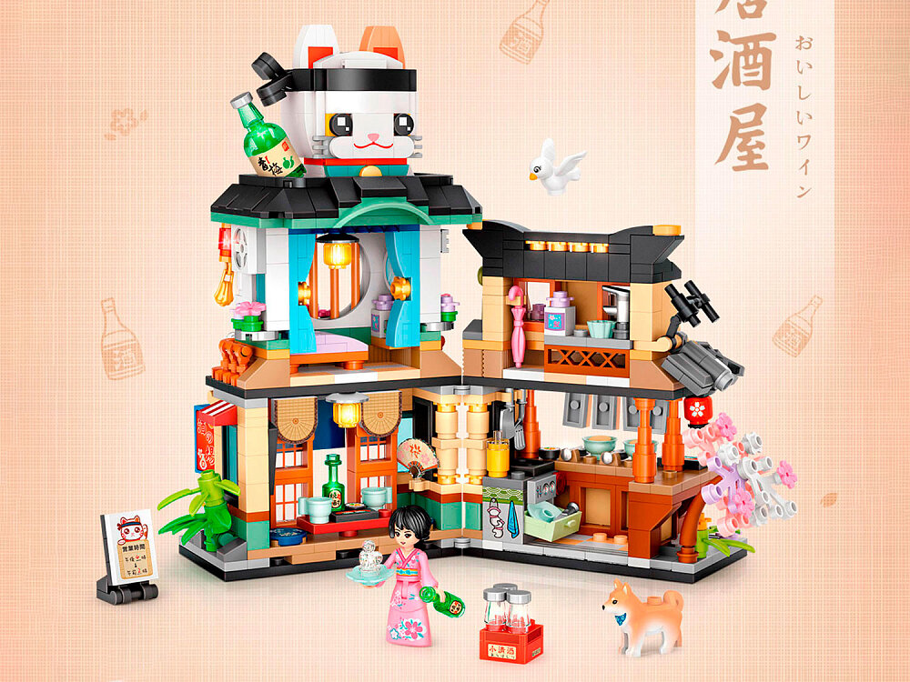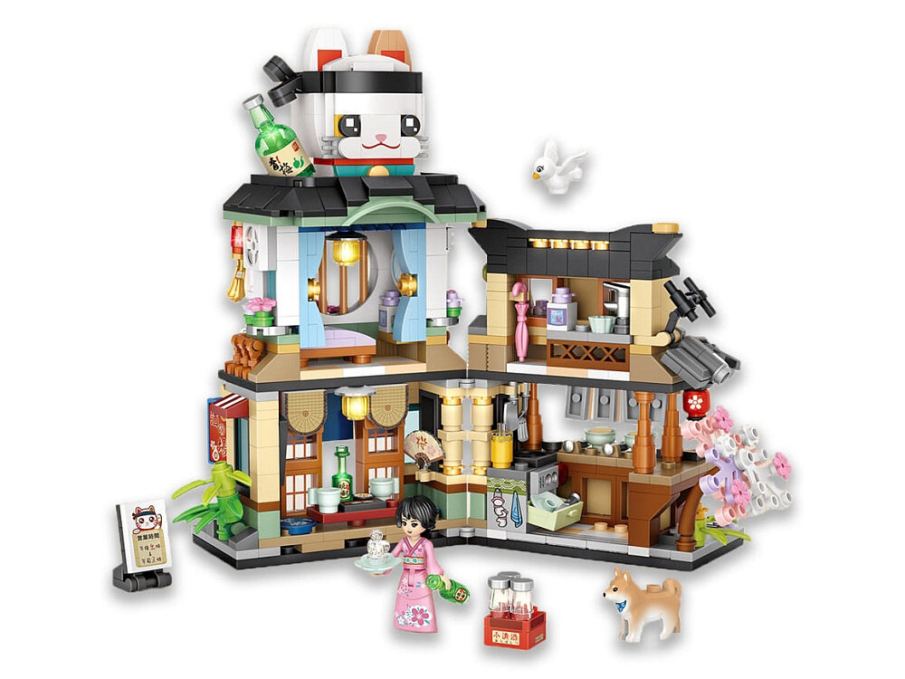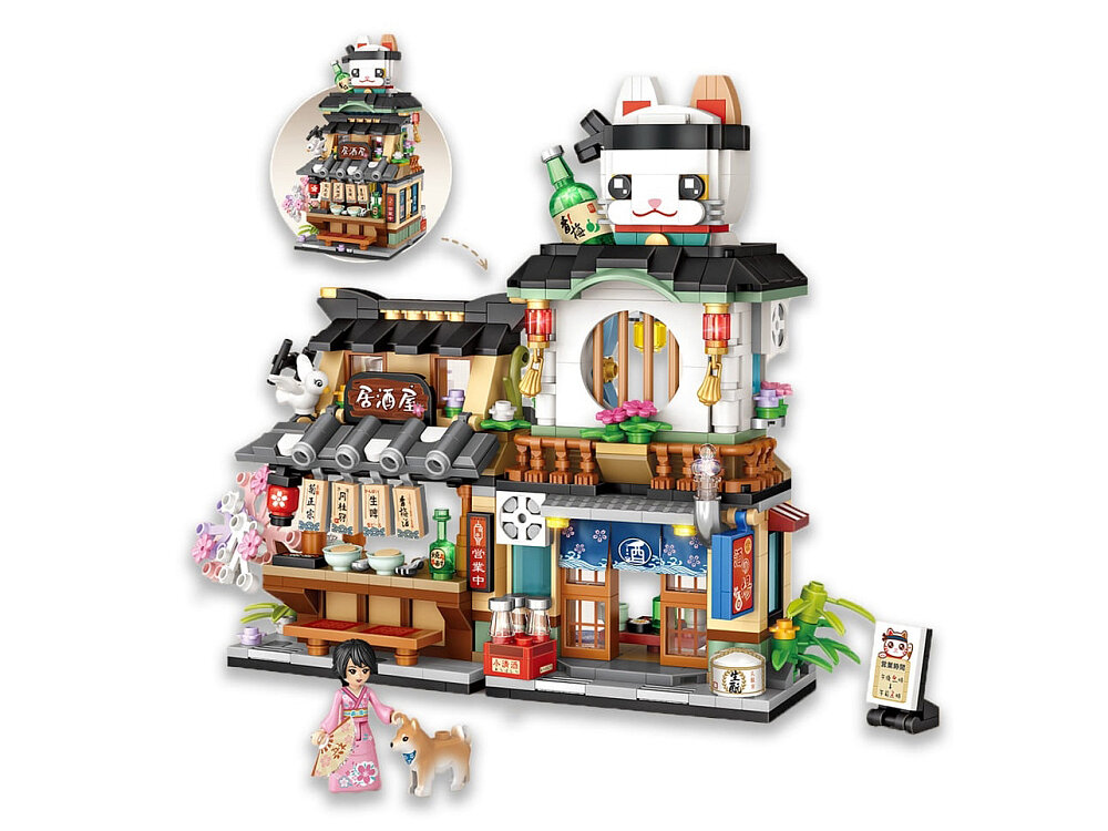 Конструктор loz mini 1232 Вид на улицу Уличный ресторан кошка , совместимы с легo конструкторами, 789 деталей