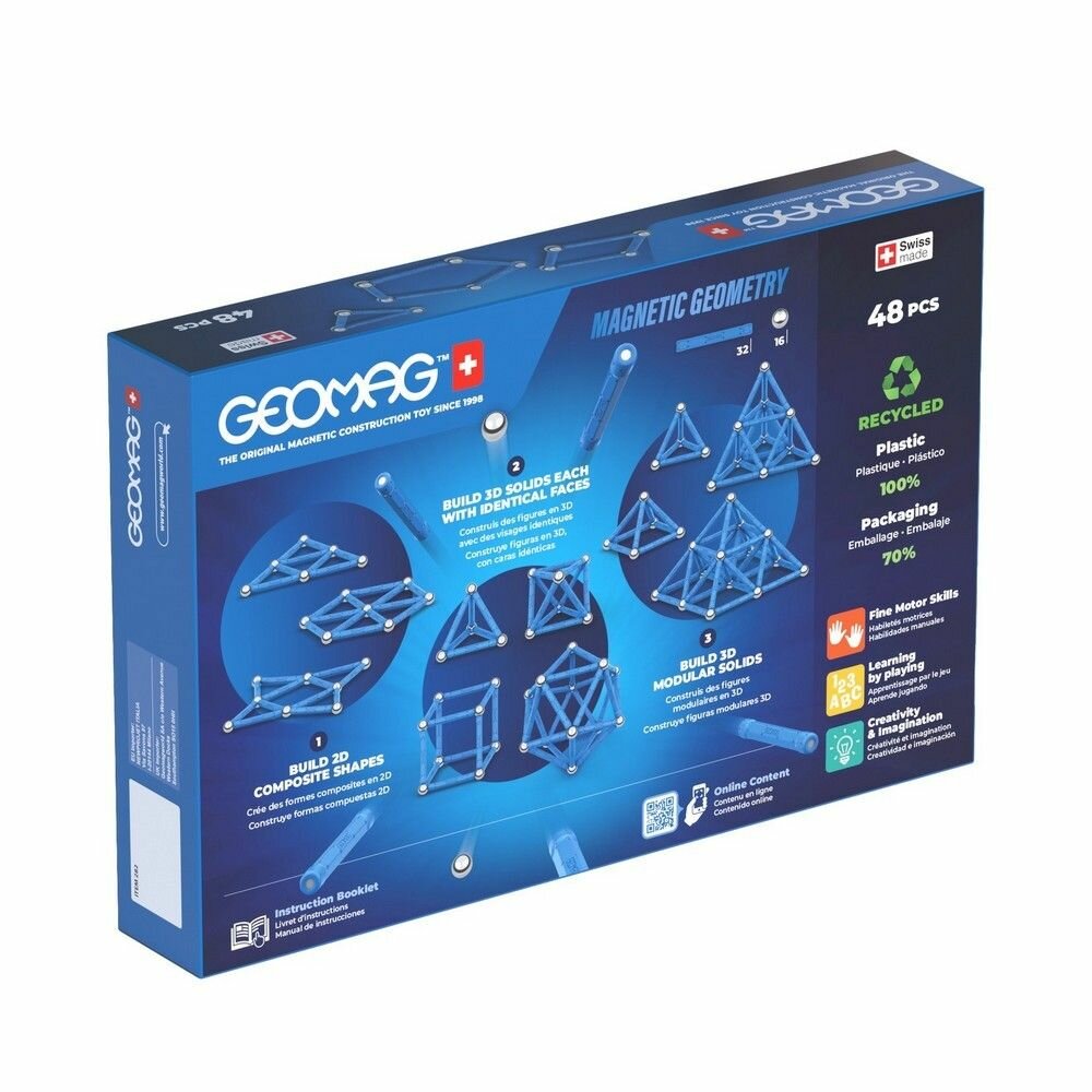 Конструктор с магнитными элементами из 48 деталей, предназначен для детей старше 3-х лет. Универсальная строительная система из металлических, магнитных и пластиковых элементов. Детали набора позволяют создавать различные трехмерные конструкции и фигуры, их сборка способствует развитию мелкой моторики рук, творческих способностей, пространственного мышления и воображения, а также помогают прививать усидчивость и терпение.