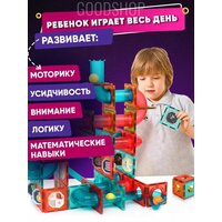 Магнитный конструктор – развивающая интерактивная игрушка-трансформер для мальчиков и девочек, отличный вариант для опытов и экспериментов для детей (головоломка). Занимательная игра отвлекает от гаджетов. Развивающий магнитный светящийся конструктор состоит из 110 деталей, из которых легко собрать многоуровневую горку, по которой будут скатываться шарики с LED-подсветкой. Такая игра-новинка стимулирует у ребенка работу мелкой моторики, логики, мозговой деятельности, воображения, творческого мышления, ловкости, внимания, усидчивости, математического и пространственного мышления. Он будет играть весь день с удовольствием! Такая занимательная игра подойдет как для самых маленьких малышей и дошкольников, так и для подростков и даже взрослых. Это интерактивная развлекалка для всей семьи, мама и папа будут играть с удовольствием вместе со своим чадом. Отлично подойдет для вечернего времяпровождения с семьей. Дети могут играть в лабиринт с шариками или домино. Товар (игровой набор) содержит пластиковые детали (блоки), имеющие крупный формат и обладающие LED-подсветкой. Они выполнены из гипоаллергенного ABS-пластика, безопасного для здоровья. Эти развивающие игрушки подарят безграничный полет фантазии и конструкторского, инженерного и математического воображения, разовьют мыслительные и творческие навыки. Увлекательная развивашка создана для детишек разных возрастов, подходит для мальчиков и девочек (дочь, сын) 3, 4, 5, 6, 7, 8, 9, 10 лет и даже более старшим тоже будет интересно! Полностью совместим с аналогичными моделями, что делает светящийся лабиринт универсальным электронным конструктором! Световая развивалка - оригинальный и крутой подарок-сюрприз на день рождения (ДР), Новый год (НГ), Рождество, 23 февраля, 8 марта, 1 сентября, выпускной в детском садике, новоселье и любой другой праздник (без повода, для дома) ребенку, сыну, дочке, сестре, брату, внуку, внучке, племяннику, племяннице, крестнику, крестнице. Останется добавить только подарочную упаковку. Игрушки головоломки – это то, что точно отвлечет ваших малышей от телефонов и планшетов. Это интересные опыты и эксперименты. Оригинальный подарок подойдет как для мальчиков, так и для девочек. Развлекалка с регулируемой подсветкой состоит из ярких цветных пластиковых частей, собирать ее можно по-разному: делать замки или лабиринты, например. Такие игры очень увлекательны, можно устраивать соревнования и весело проводить время всей семьей. Развивашка не представляет опасности, так как изготовлена из прочного и безопасного гипоаллергенного пластика. Светящиеся элементы в ней с персонажами мультфильмов, она не имеет острых граней и мелких деталей, ее легко собирать и разбирать, она не надоест за пару недель и будет интересна даже взрослым. Пополните коллекцию ребенка оригинальным подарком! У нас всегда действуют скидки и акции, подписывайтесь на наш магазин, чтобы не пропустить интересные и выгодные предложения!