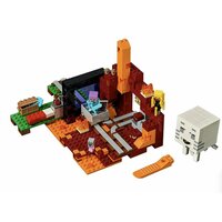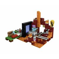 В наборе представлена игровая площадка, делимая на два отдельных участка. В левой стороне располагается временное жилье Стива с красно-белой кроватью, прикроватной тумбочкой, горящим факелом и деревянным сундуком. Портал в Подземелье, представленный черной рамкой с фиолетовым наполнением, служит разграничителем двух пространств для существования. Пройти через нее можно только сев и проехав на стальной серой вагонетке по железнодорожным путям. По правую сторону от портала располагается территория, состоящая из бордовой суши и лавовых потоков. На ней железнодорожные пути расходятся прямо и с ответвлением влево. Проехав по путям прямо, герой попадает в ловушку Ифрита, Гаста и Лавового куба, но, отбившись, сможет добыть светокамень. Решив свернуть влево, Стив попадает под вызванный активацией скрытого механизма лавовый водопад.