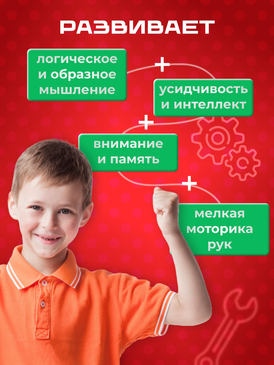 Конструктор Эйфелева башня - это большой набор из 977 элементов для творчества мальчиков и девочек, которые любят пользоваться инструментами. Позволяет создать модель знаменитой Эйфелевой башни и станет отличным подарком для детей и подростков. Железный конструктор содержит большой набор деталей, а также отвертку и гаечный ключ. Подходит для малышей, детей от семи лет, а также школьного возраста и старше. Игрушки из железа можно использоваться как для индивидуальных занятий, так и для уроков в школе. Ручной труд, работа отверткой, игры с металлическими деталями приносят радость творчества. Этот детский конструктор поможет развивать логическое мышление, улучшать координацию движений и научит работать с металлом. В набор входит 977 деталей • Планка 15 отверстий – 40 шт. • Планка 10 отверстий – 34 шт. • Планка 5 отверстий – 7 шт. • Планка 3 отверстия – 12 шт. • Планка 2 отверстия – 12 шт. • Планка – 1 шт. • Пластина 50х20 – 5 шт. • Скоба I – 2 шт. • Уголок I – 49 шт. • Уголок II – 16 шт. • Уголок III – 4 шт. • Пластина 50х20 – 20 шт. • Пластина 40х20 – 8 шт. • Панель большая – 2 шт. • Косынка II – 8 шт. • Косынка III – 16 шт. • Планка сегментная – 4 шт. • Планка сегментная II – 8 шт. • Отвёртка – 1 шт. • Гаечный ключ – 1 шт. • Винт М4 х 6 – 355 шт • Винт М4 х 8 – 8 шт. • Винт М4 х 16 – 1 шт. • Гайка М4 х 16 – 368 шт • Инструкция со схемой сборки – 1 шт. Все товары тщательно упаковываются, что бы избежать повреждений, а также проверяются на всех этапах доставки. Производитель обеспечивает комплектность. Мы будем рады ответить на все Ваши вопросы! Поделитесь своими отзывами!