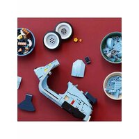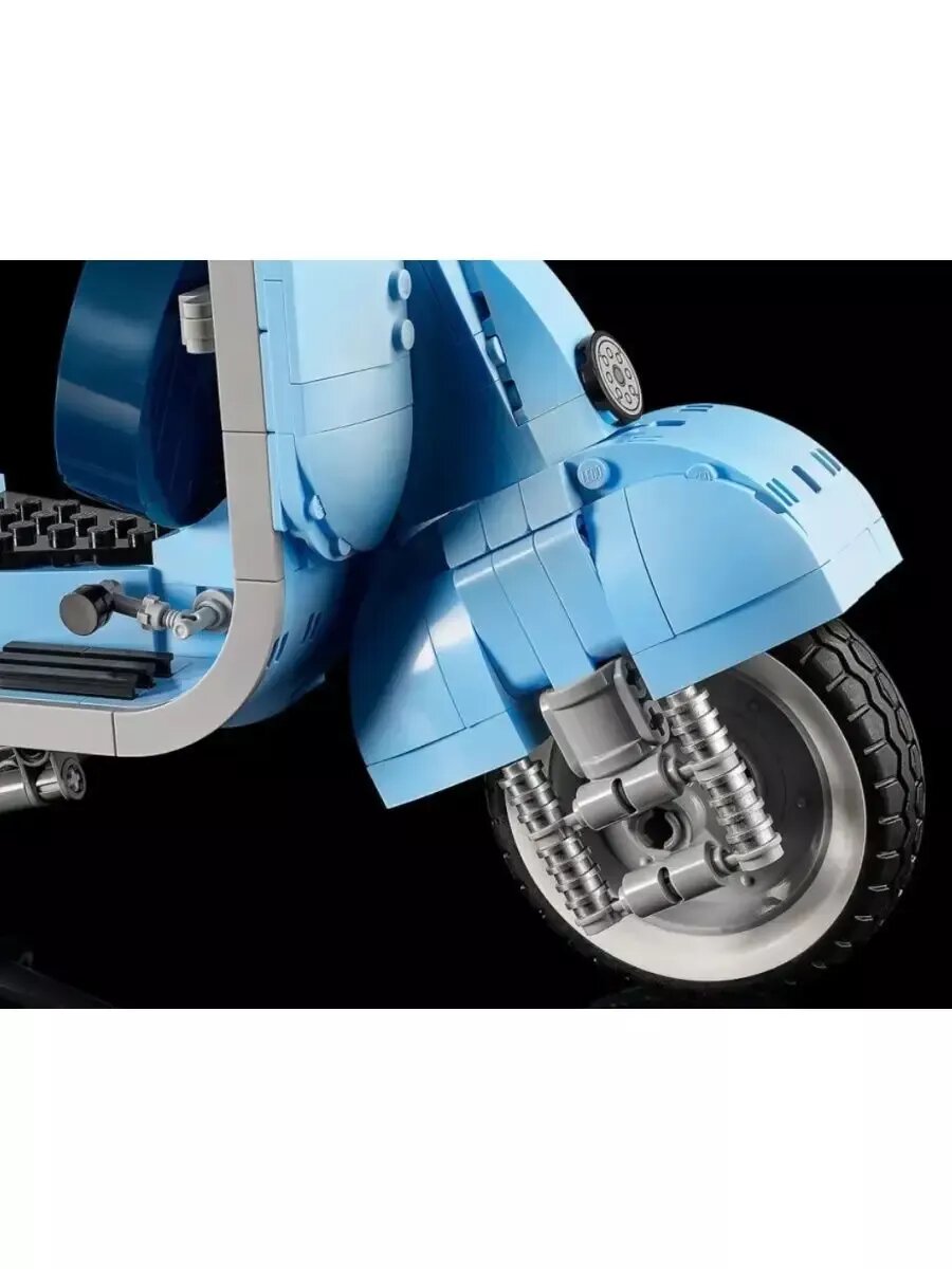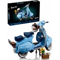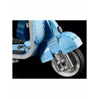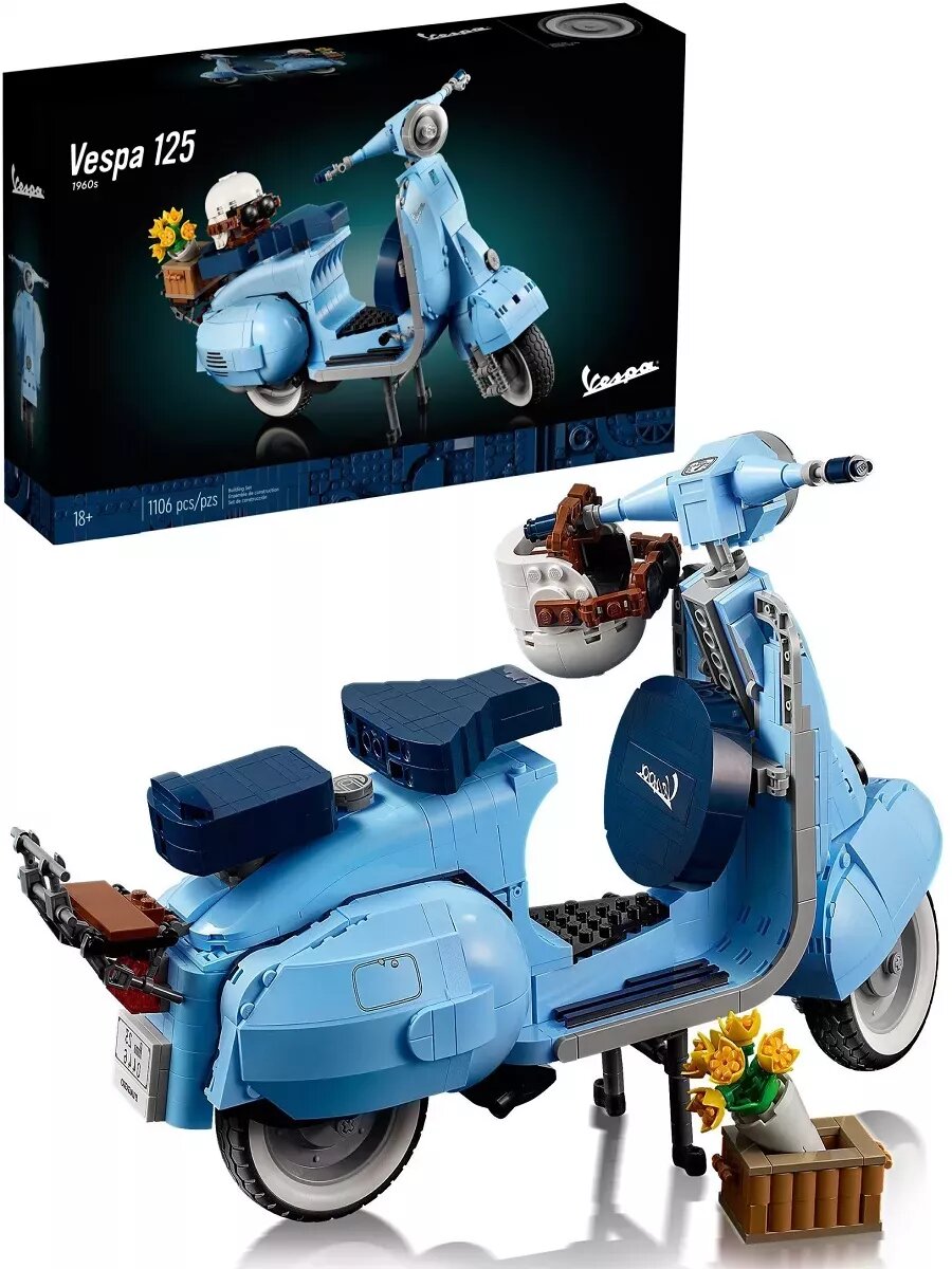 Этот набор для взрослых Vespa 125, созданный в честь 75-летия Vespa и основанный на классической модели Vespa Piaggio 1960-х годов, выполнен в пастельно-голубом, очень редком цвете, который наверняка понравится любителям конструирования. Готовая модель набора, собранная из 1106 предложенных деталей, достигает 35 см в длину и выглядит потрясающе. Миниатюрная копия культового скутера, который приобрел популярность в 1960-х годах и стал символом модной субкультуры Италии. За время существования этого скутера было выпущено множество моделей с разным рабочим объемом. В данном наборе представлена Vespa с рабочим объёмом 125 см³. Этот мотороллер собран из нежно-голубых деталей с наклейками, которые завершают образ. Проработанный двигатель, спрятанный под съемной крышкой, работающий руль, продуманные изгибы, два темно-синих сиденья, запасное колесо, номерной знак, подножка, шлем и корзинка с цветами. Всё это дополняет образ превосходной модели мечты Итальянца. Эта любовь к мотороллеру была показана в мультфильме «Лука» 2021 года, где двое друзей участвуют в гонке, чтобы на полученный приз купить Vespa, и стать свободными.