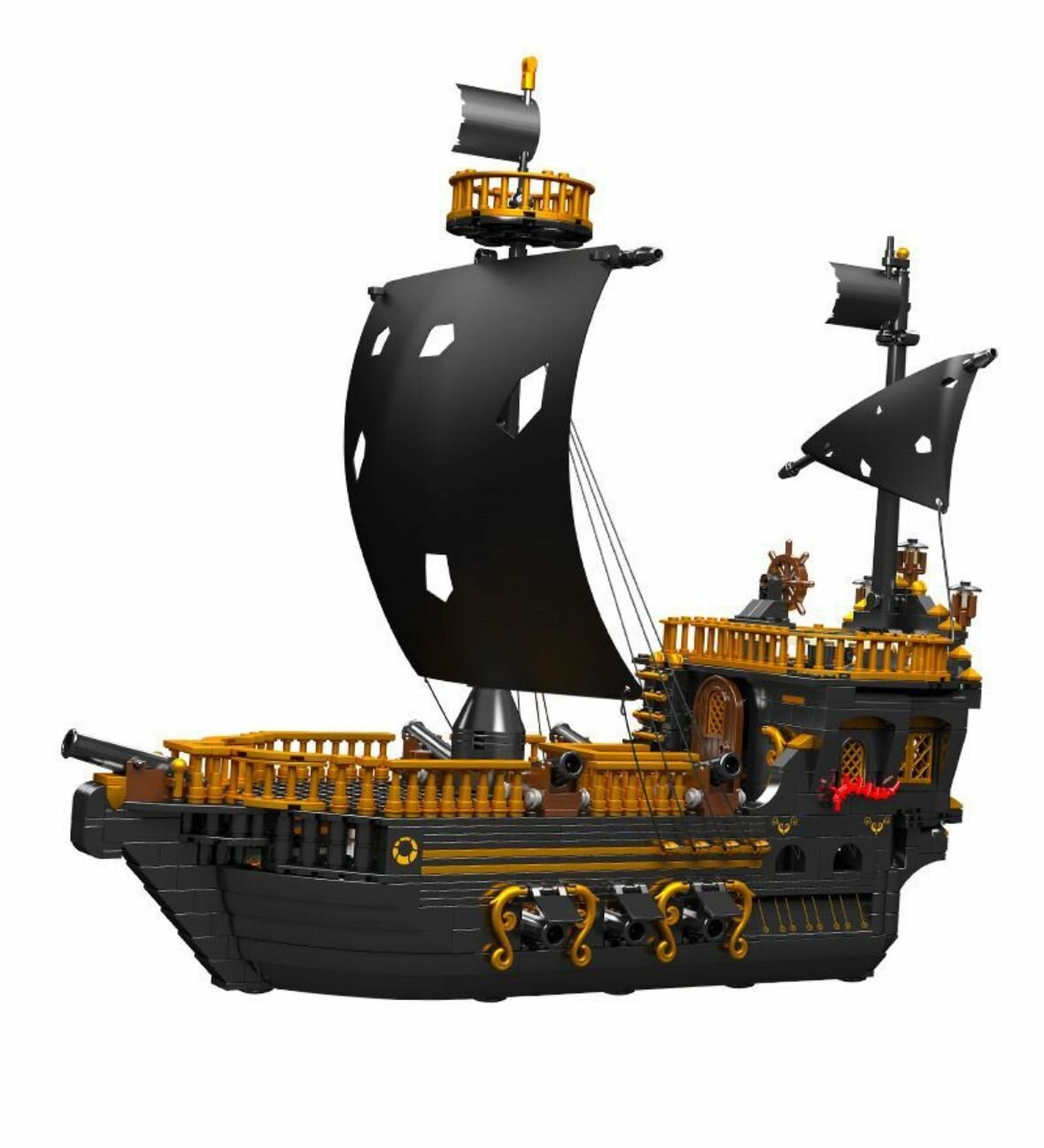 Конструктор Пиратский корабль «Чайка». Набор из 1288 деталей принадлежит к разделу «Пираты», к категории «Корабли». Один из судов по мотивам киносаги Пираты Карибского Моря — легкий абордажный корабль. Собранная модель вызовет немало восхищения детальной проработкой такелажа и внутренних помещений, а черные тканевые паруса добавят аутентичности. Отлично детализированы игровые свойства: двухпалубный фрегат оснащен пушками с открывающимися бойницам, большой пушкой на носу, съемным полом верхней палубы для доступа к внутренним помещениям, а черные паруса можно украсить пиратской символикой. Создавайте новые сюжеты и игровые сценарии из мира флибустьеров.