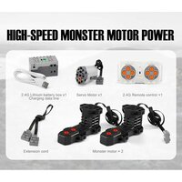 Набор электрики: блок питания с приемником радиосигнала - 1 шт, Monster мотор - 2 шт, Servo Motor - 1 шт, соединительные кабель - 1 шт. пульт ДУ - 1 шт, приложение App для смартфона; в набор НЕ входят элементы питания для пульта типа AAA - 2 шт.