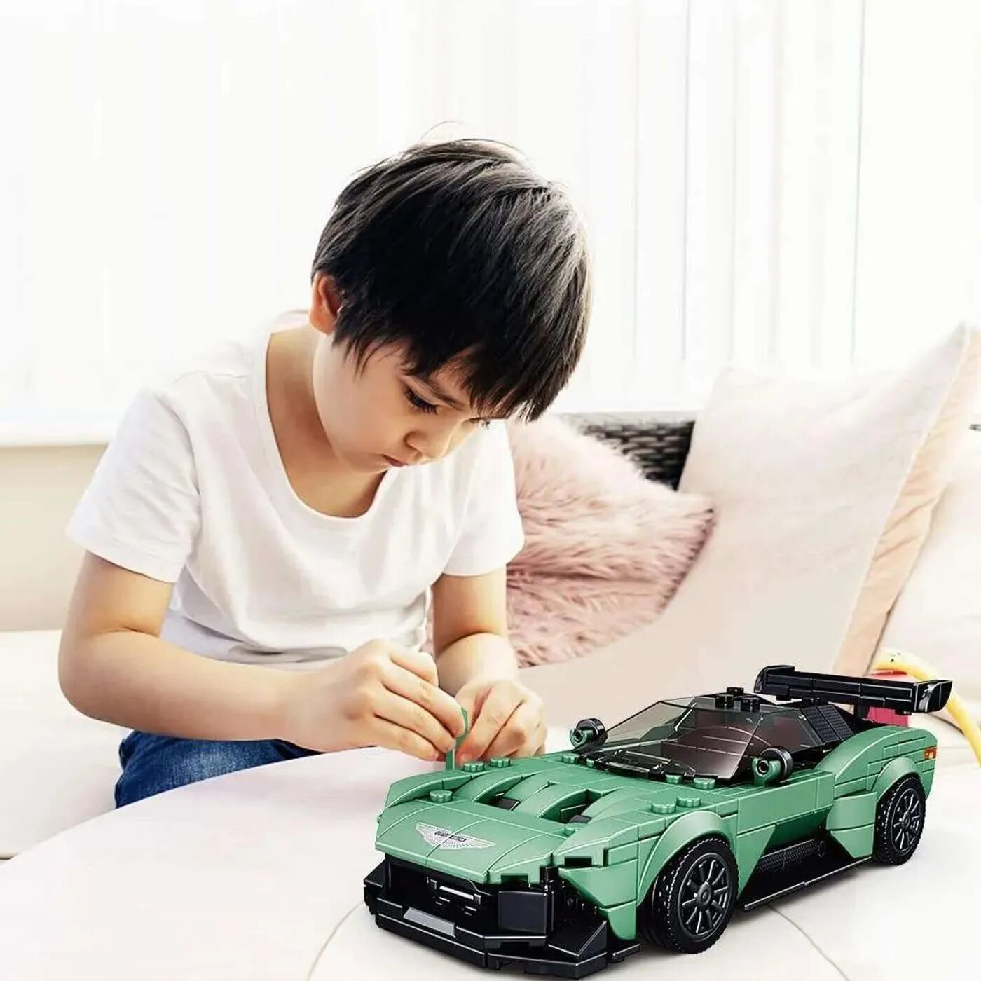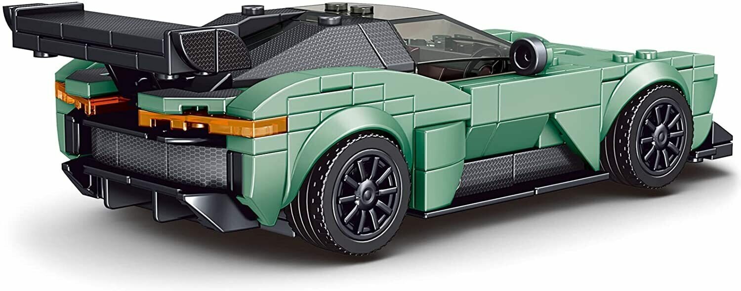 Из конструктора удастся собрать современный автомобиль с зелёным корпусом. Есть также чёрные детали, которые придают машине солидный вид. Колёса довольно крупные, они обеспечивают высокую устойчивость на дороге. Есть спойлер, улучшающий аэродинамические свойства транспортного средства. Салон застеклён, но через стёкла хорошо видно, что находится внутри. Автомобиль непременно понравится ребёнку, а также он заинтересует коллекционеров.