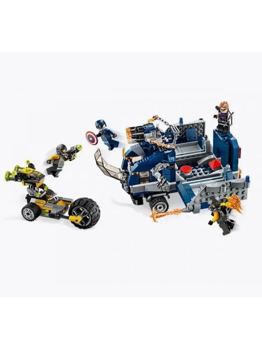 - Играя с минифигурками Капитана Америки, Соколиного Глаза и двух Агентов А. И. М, три из которых впервые выпущены в январе 2020 года, а также с трёхколёсным мотоциклом, дроном и грузовиком Мстителей (со скрытым оружием!), дети смогут воссоздать легендарные эпизоды сражений супергероев со злодеями.