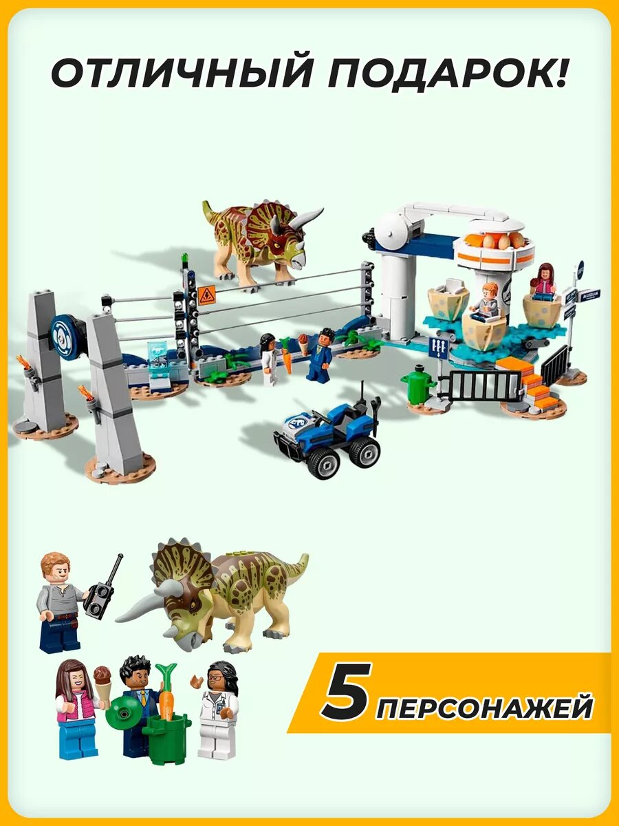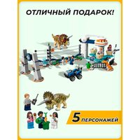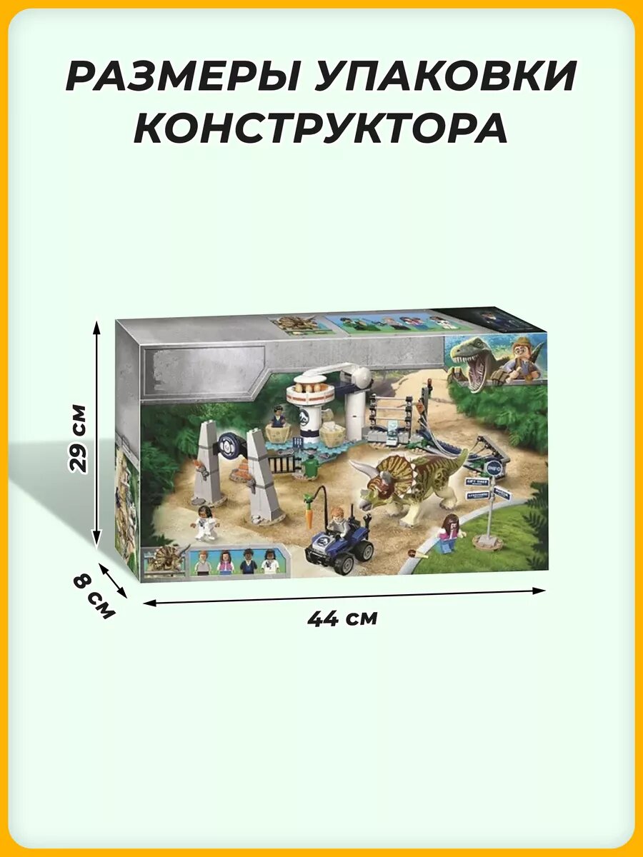 Парк Юрского периода - точно не то место, где приходится скучать. Посмотри: электросети вышли из строя, и трицератопс оказался на воле. Это очень мощный ящер: он обладает тремя рогами и костяным воротником, защищающим его голову и шею в схватках с другими динозаврами. Вы и ваш ребенок здорово проведете время, собирая этот конструктор. Помимо развлекательной функции он способствует развитию творческого мышления и тренирует мелкую моторику пальцев. Помогает детям осваивать окружающую действительность посредством веселого развлечения. Детские психологи считают, что с помощью такой игрушечки ребенок 7-8-9-10 лет прививает у себя самостоятельность, усидчивость и внимательность. Кроме этого, он учится конструировать и воплощать в жизнь придуманные модели и образы. Серия конструкторов Мир Юрского периода запущенная в 2015 году погружает нас в мир динозавров. История начинается с того, как доктор Алан Грант, эксперт по динозаврам, получает приглашение от богатого предпринимателя Джона Хэммонда посетить новый парк Юрского периода, расположенный на острове Нублар. По мере продвижения по острову, герои сталкиваются с различными видами динозавров, такими как Велоцирапторы и Трицератопсы. Воссоздайте лабораторию доктора Генри Ву, создателя Индораптора и Индоминус Рекс, воссоздай Побег Тираннозавра Рекса из клетки, постройте пещеру Цератозавра и покажите сцены битвы с динозаврами, разыграйте похищение эмбрионов динозавров предателем Деннисом Недри и другие наборы. Такое занятие позволяет развивать необходимые для каждого навыки. Кроме того, большой конструктор еще и полезная игрушка, потому что требует от малыша внимания, сосредоточенности и аккуратности. Аналоги совсем не отличаются от оригинала датской фирмы. Благодаря понятной инструкции в голове вашего сына будет сформирована картина конечного результата действия. Новинка будет прекрасным подарком для всех возрастов как мальчику-подростку так и девочке как новогодний презент, а также на День Рождения, 8 Марта.