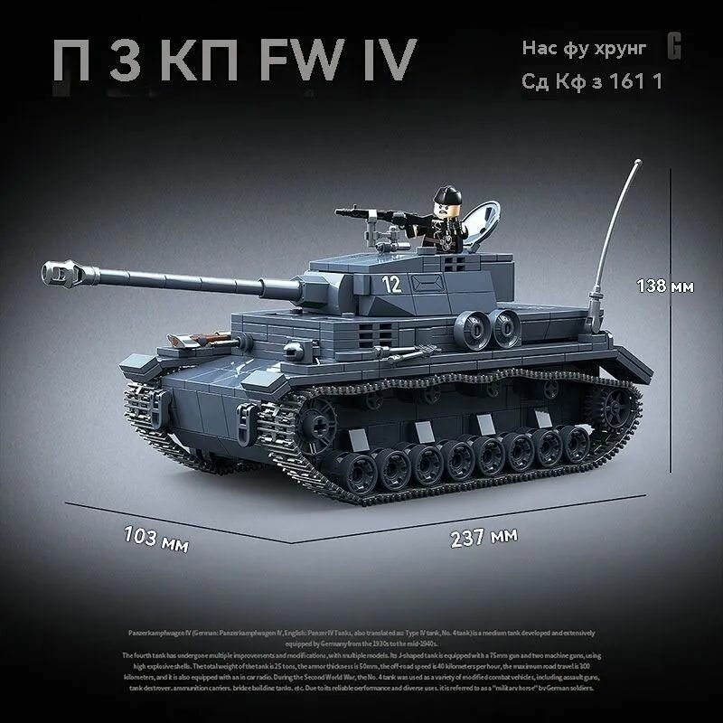 Конструктор Танк / Немецкий PZ.KPFW.IV / 985 деталей 100251: сравнение цен, характеристики, фото, актуальное наличие и цены.