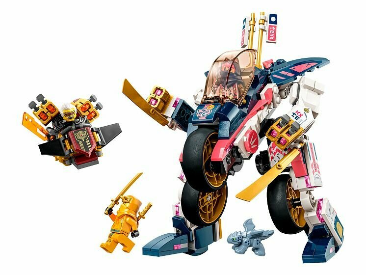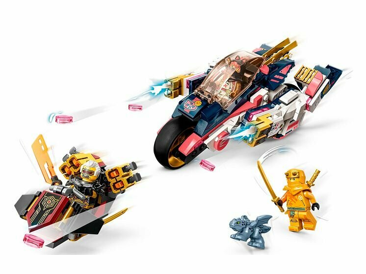 Погрузитесь в мир Ниндзяго и соберите своего собственного героя-ниндзя! В конструкторе "Байк-трансформер Соры", состоящем из 394 деталей, вас ждут мини-фигурки любимых персонажей: Сора с золотыми мечами, Арин с катаной и крюком для захвата, Раптон с имперским мечом и милый дракончик Райю.