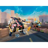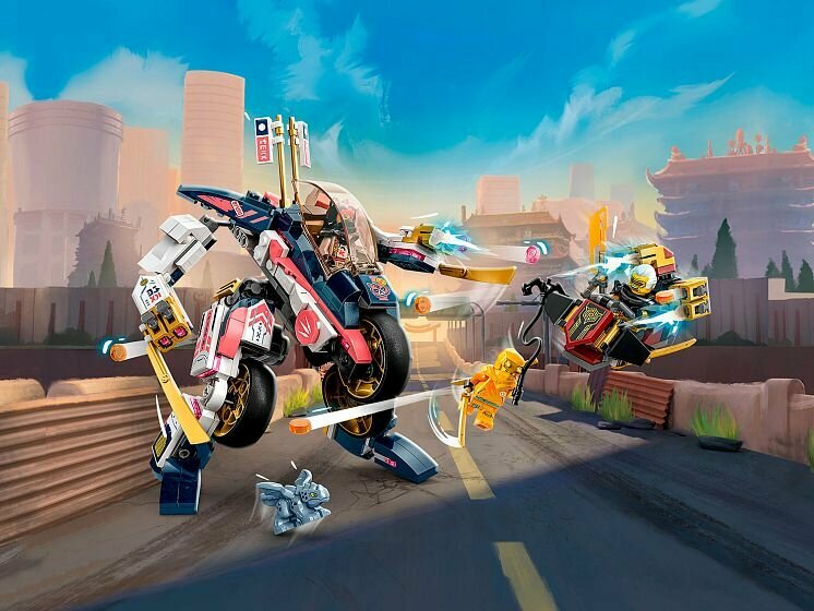 Соберите мощный мотоцикл ниндзя, который легко трансформируется в подвижного робота с огромными мечами и шипометами, и отправьтесь на защиту города от злодеев! В комплект также входят разнообразные аксессуары, чтобы ваше приключение было еще более захватывающим и интересным!
