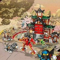 Поклонники ниндзя в возрасте от 8 лет смогут тренировать своих героев и разыгрывать сражения с этим потрясающим трёхэтажным игровым набором «Храм-додзё ниндзя» ниндзя, который полон крутых функций. В додзё есть тренировочная площадка и пять помещений, включая чайную комнату Ву, мастерскую П. И. В. В. Ж. и оружейную. Строительный набор для самостоятельной игры. В этот набор для сборки ниндзя входят 8 минифигурок: Ллойд, Кай, Коул, Ния, мастер Ву, П. И. В. В. Ж, а также змеиные воины Кобра-механик и Удав-разрушитель со своим тараном, чтобы разыгрывать динамичные приключения. Игрушки ниндзя увлекут детей от экранов в захватывающий мир фантастических приключений. Здесь они могут объединиться с отважными героями-ниндзя и сразиться с силами зла при помощи обширного арсенала наборов для сборки, среди которых есть роботы, драконы и храмы.