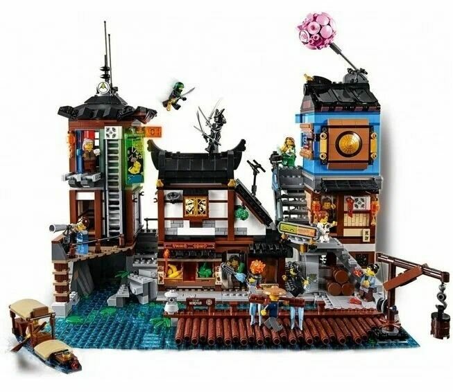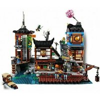 Конструктор "Порт ниндзя Сити" – это воистину таинственное и интересное место! Приготовьтесь к драме, комедии и хаосу одновременно. Портовый кран занят работниками, здесь можно покататься на лодке, купить продукты в магазине. В зале картографии можно ознакомитьсяс путешествиями исследователяРэнди. Кафетерий так и манит запахом свежезаваренного кофе. Еще много интересного ждет в Порту: газировка в уличном автомате, видеоигры и огромный красный воздушный шар. Игра обещает быть занимательной!