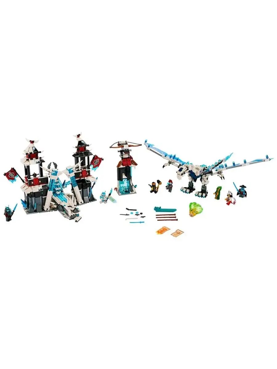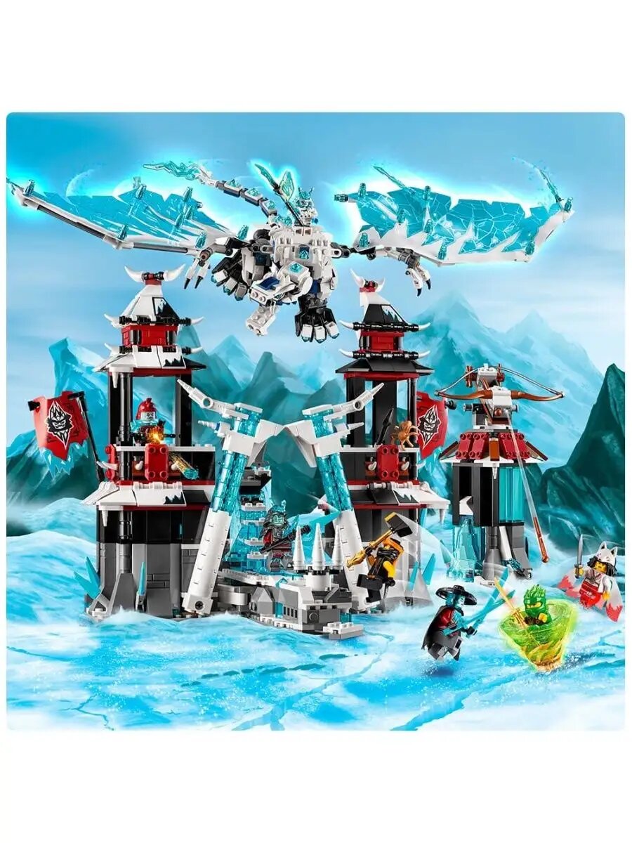 Вам предстоит исследовать территорию таинственного Замка, чтобы ваши ниндзя не попали в ловушку ледовой тюрьмы. Помоги Коулу, Ллойду и Аките увернуться от выстрелов шутера с ледяной башни и арбалетов стражей Замка. В набор входит ледяная башня с шутером и ледяной тюрьмой. В зале есть ледяная арка и трон императора с тайником. Также вы сможете собрать Ледяного дракона с подвижными головой, ногами и хвостом. В наборе 7 минифигурок: Ллойд, Акита, Коул, Ледяной Император, генерал Векс, Метатель Метелицы и Мастер Меча Метелицы. Оружие: серебряная катана Коула, золотой молоток, кинжал Акиты, ледяное копье Векса, Свиток Запретного Кружитцу, две ледяные катаны и арбалет Снежных самураев. А также другие аксессуары: торнадо Ллойда, ледяные доспехи Императора и Векса, плащ и волчья голова Акиты и другие. Размер замка в собранном виде составляет 22×24×32см. Вы и ваш ребенок здорово проведете время, собирая этот конструктор. Помимо развлекательной функции он способствует развитию творческого мышления и тренирует мелкую моторику пальцев. Помогает детям осваивать окружающую действительность посредством веселого развлечения. Детские психологи считают, что с помощью такой игрушечки ребенок 7-8-9-10 лет прививает у себя самостоятельность, усидчивость и внимательность. Кроме этого, он учится конструировать и воплощать в жизнь придуманные модели и образы. Серия конструкторов NinjaGo посвящен одноименному мультсериалу. Вселенная кишит разнообразием и неожиданностью: персонажи перерождаются в новых формах, темные сущности овладевают положительными героями. История началась с Первого Мастера Кружитцу, который при помощи четырех видов Золотого оружия, создал вселенную Ниндзяго - один из параллельных Шестнадцати миров. Коул, Джей, Кай и Зейн с Силой стихий обучились искусству и начали защищать оружие.