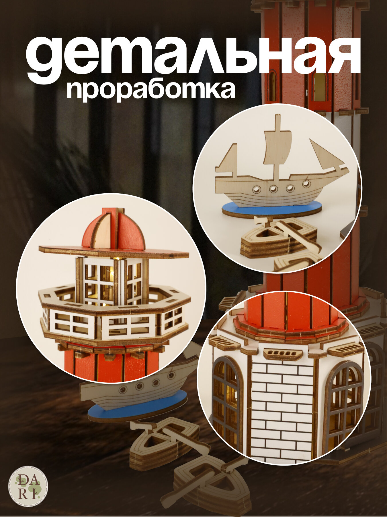 Конструктор-ночник Dariwood «Цветной Маяк», дерево, подсветка, 99 деталей: сравнение цен, характеристики, фото, актуальное наличие и цены.
