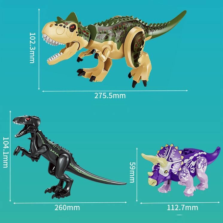 Пластиковый конструктор для мальчика для девочки фигурка динозавр упакован в яркую тематическую коробку, детали внутри запаяны в пакеты. Инструкция по сборке конструктор для взрослых и детей также в комплекте. Совместим с LEGOs.